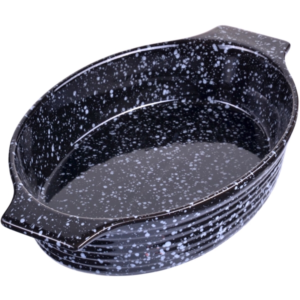 Овальный керамический противень Loraine 27795 чёрного цвета отлично подойдёт для томления, тушения и запекания блюд и сервировки стола. Керамика впитывает влагу и отдаёт её продуктам, поэтому еда получается вкусной и полезной. Приготовление на медленном огне без добавления жиров сохраняет витамины и микроэлементы.