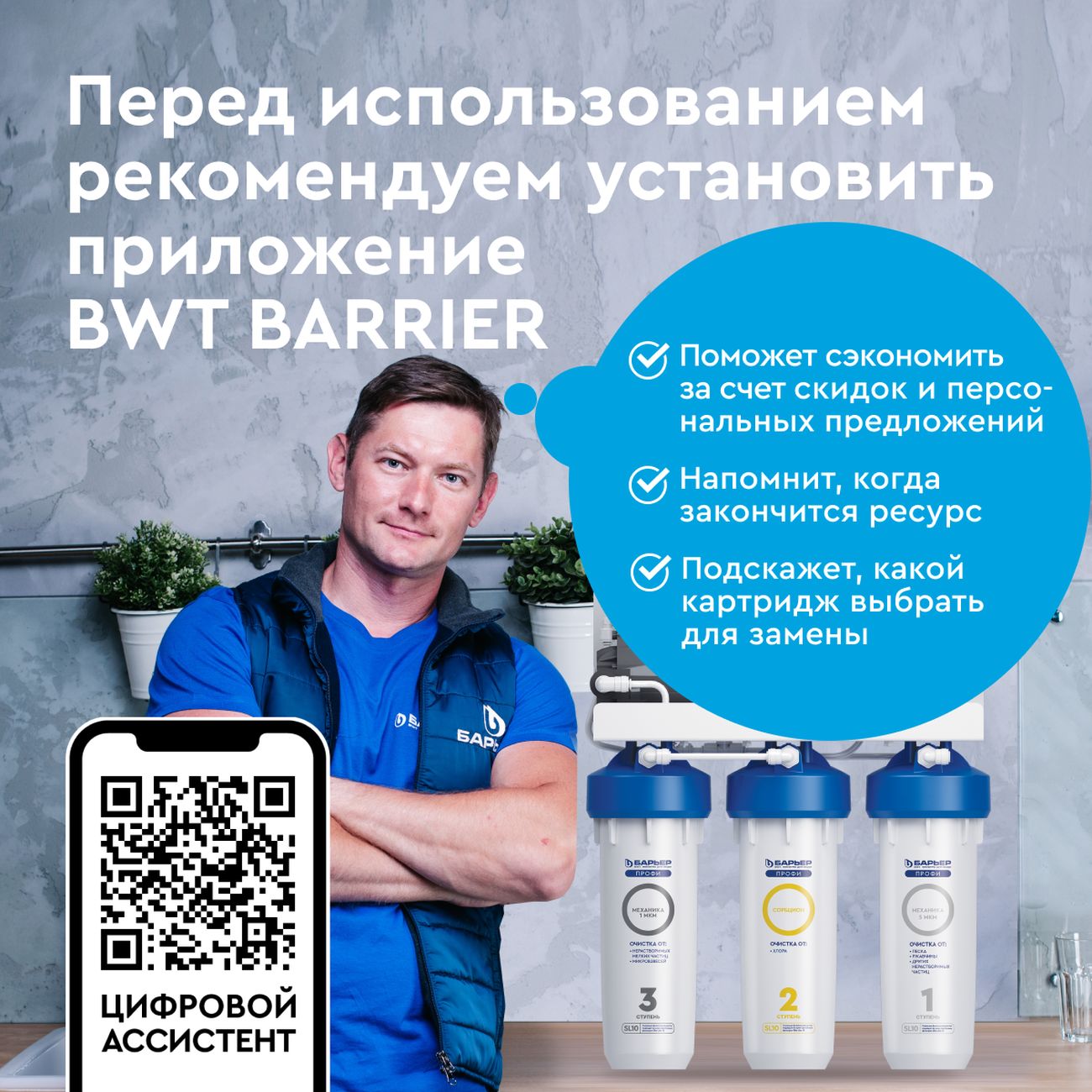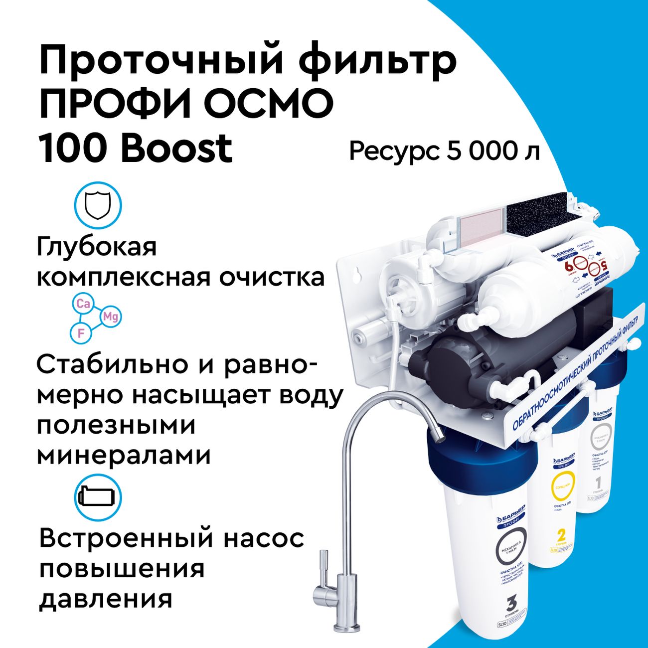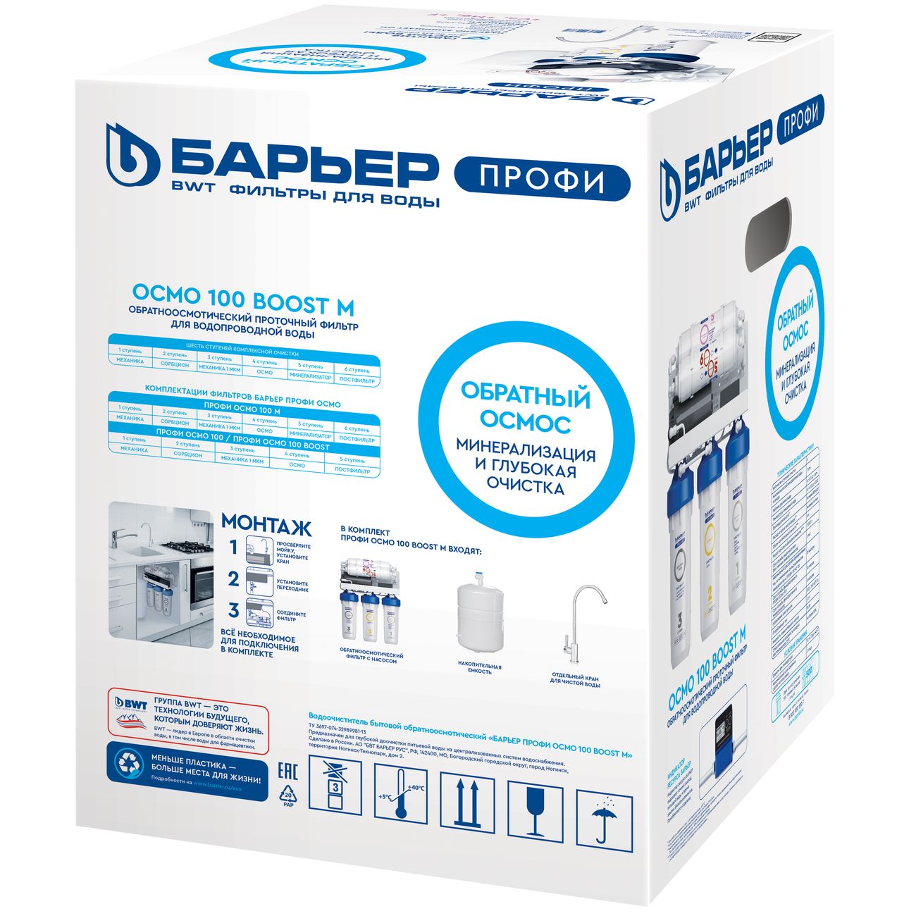 Фильтр «Барьер Профи Осмо 100 Boost М» устанавливается под мойку и обеспечивает качественную очистку воды. На монтаж понадобится всего полчаса. Для этой модели не потребуется приобретать кран – он есть в комплекте.