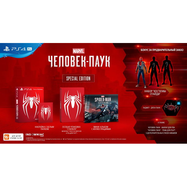 Вы можете купить PS4 игра Sony Человек-паук Special Edition в магазинах М.Видео по доступной цене. PS4 игра Sony Человек-паук Special Edition: подробное описание, фото и отзывы реальных покупателей, характеристики, возможность скачать инструкции и подобрать аксессуары.