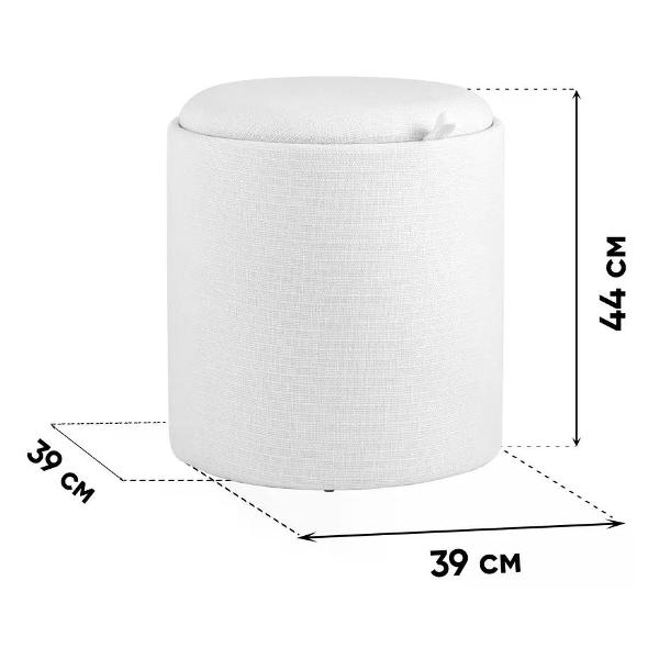 Благодаря круглой форме, обивке из рогожи и наличию встроенного ящика для хранения пуфик легко вписывается в различные интерьерные стили — от минимализма до современного или классического. Он остаётся практичным решением для прихожей, спальни, гостиной и личных зон, сочетая удобство, функциональность и аккуратный внешний вид.