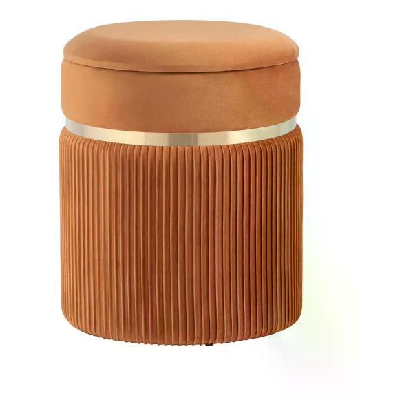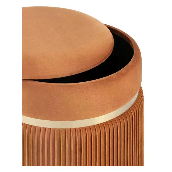 Пуф — это универсальный элемент мебели, который сочетает компактность, функциональность и эстетичный внешний вид. Круглая форма придаёт ему мягкие линии и делает его визуально лёгким, позволяя гармонично вписываться в разные зоны интерьера. Он легко размещается у стены, рядом с кроватью или в центре комнаты, дополняя пространство удобным посадочным местом и создавая ощущение уюта. Обивка из велюра отличается мягкой бархатистой текстурой и благородным внешним видом. Встроенный ящик для хранения делает пуф ещё более функциональным, позволяя хранить пледы, подушки, обувь или другие необходимые мелочи.