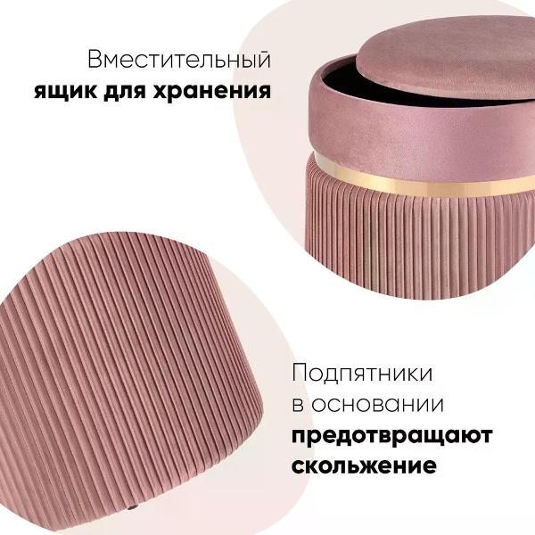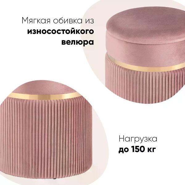 Благодаря круглой форме, обивке из велюра и наличию встроенного ящика для хранения пуфик легко вписывается в различные интерьерные стили — от минимализма до современного или классического. Он остаётся практичным решением для прихожей, спальни, гостиной и личных зон, сочетая комфорт, функциональность и аккуратный внешний вид.