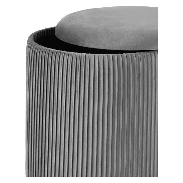 Пуф — это универсальный элемент мебели, который сочетает компактность, функциональность и эстетичный внешний вид. Круглая форма придаёт ему мягкие линии и делает его визуально лёгким, позволяя гармонично вписываться в разные зоны интерьера. Он легко размещается у стены, рядом с кроватью или в центре комнаты, дополняя пространство удобным посадочным местом и создавая ощущение уюта. Обивка из велюра отличается мягкой бархатистой текстурой и благородным внешним видом. Встроенный ящик для хранения делает пуф ещё более функциональным, позволяя хранить пледы, подушки, обувь или другие необходимые мелочи.