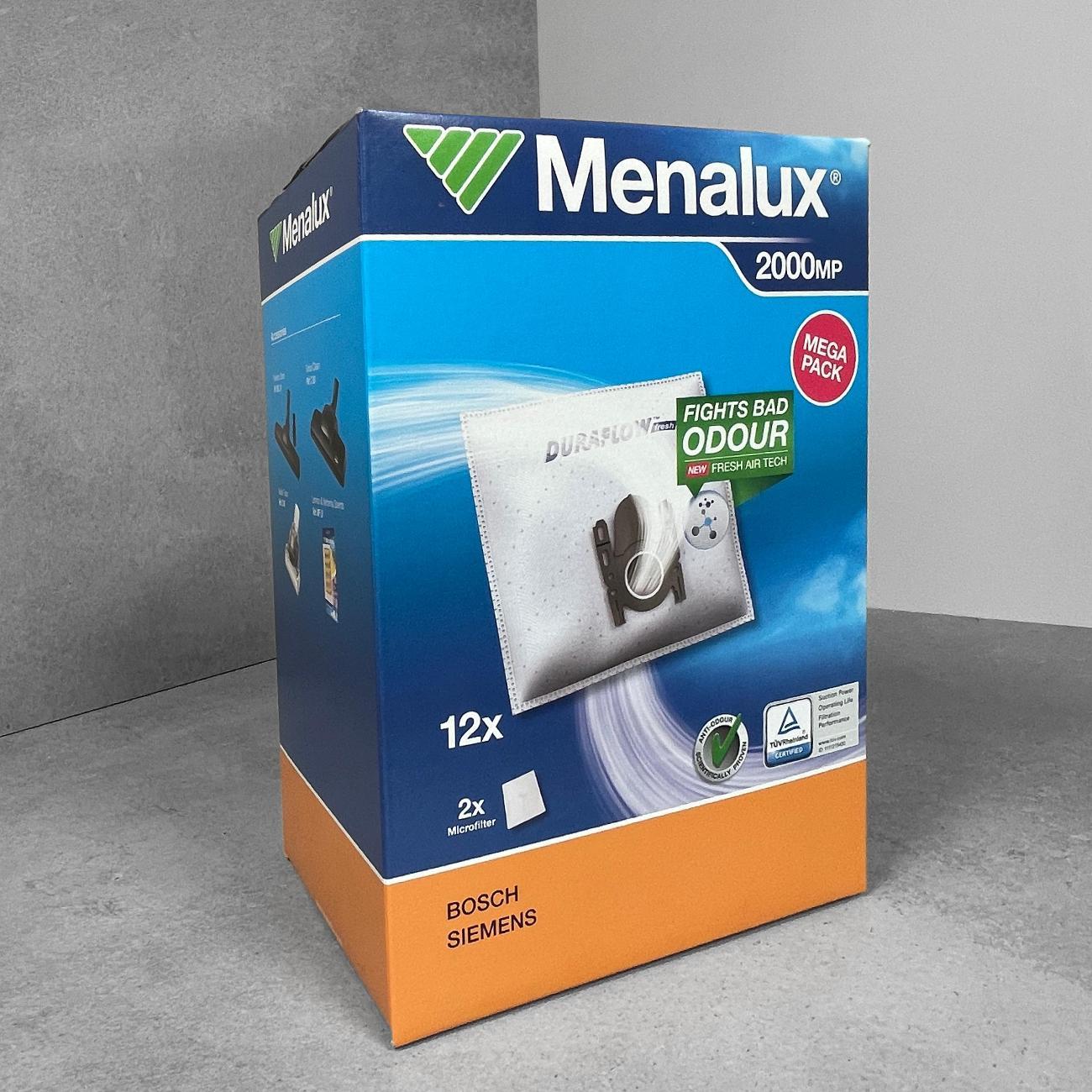 Оригинальные одноразовые синтетические мешки пылесборники Menalux 2000MP (МегаПак-большая упаковка) типа Typ G для пылесосов Bosch и Siemens - идеальное решение для эффективной уборки вашего дома. В комплекте 12 штук мешков для пылесоса + 2 микрофильтр для защиты мотора пылесоса. Страна производства: Швеция.