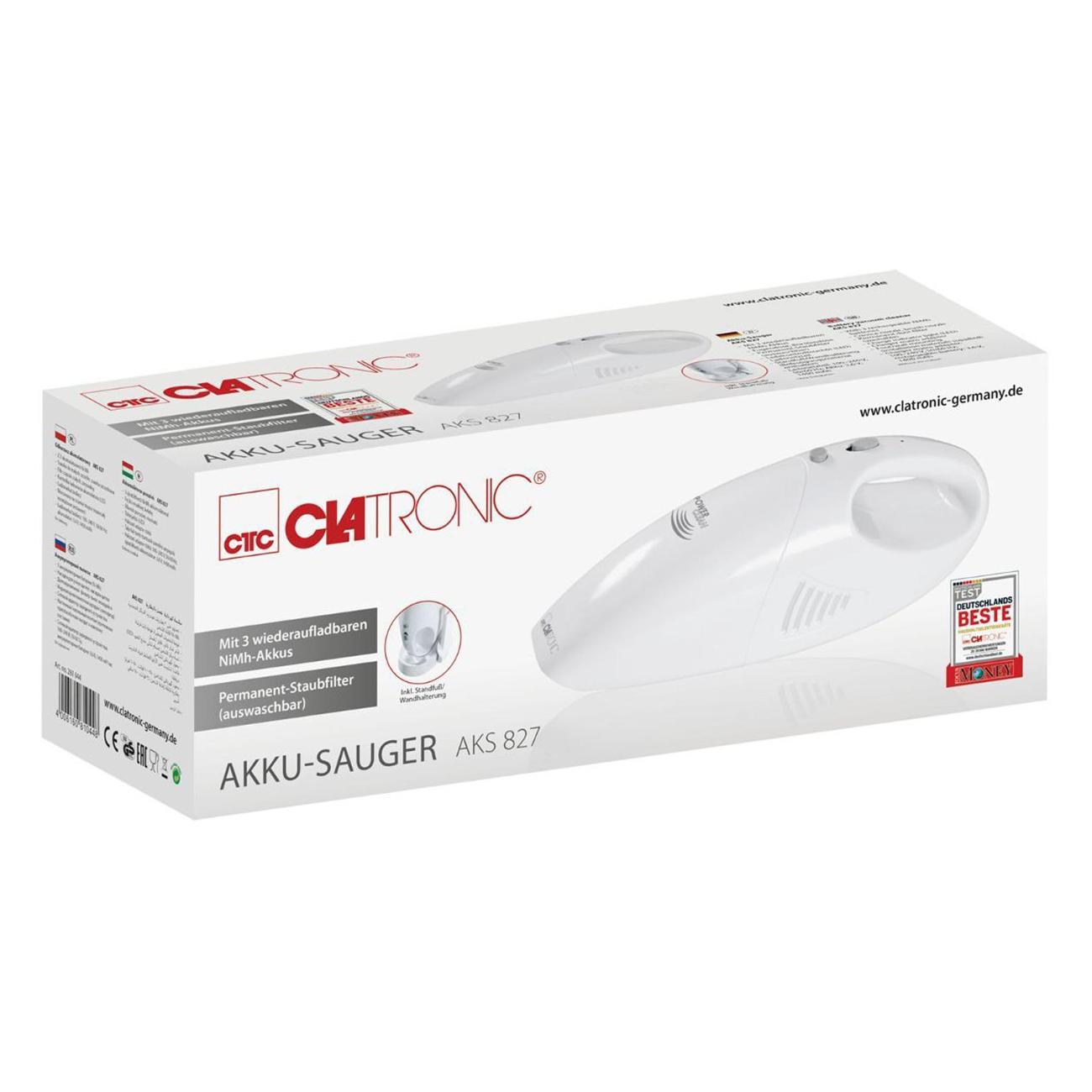 Аккумуляторный пылесос Clatronic AKS 827 — компактная модель в корпусе белого цвета. Устройство поможет быстро привести в порядок салон автомобиля и очистить мягкую мебель. В комплекте входят щетка и щелевая насадка. Прибор оснащен циклонным фильтром.