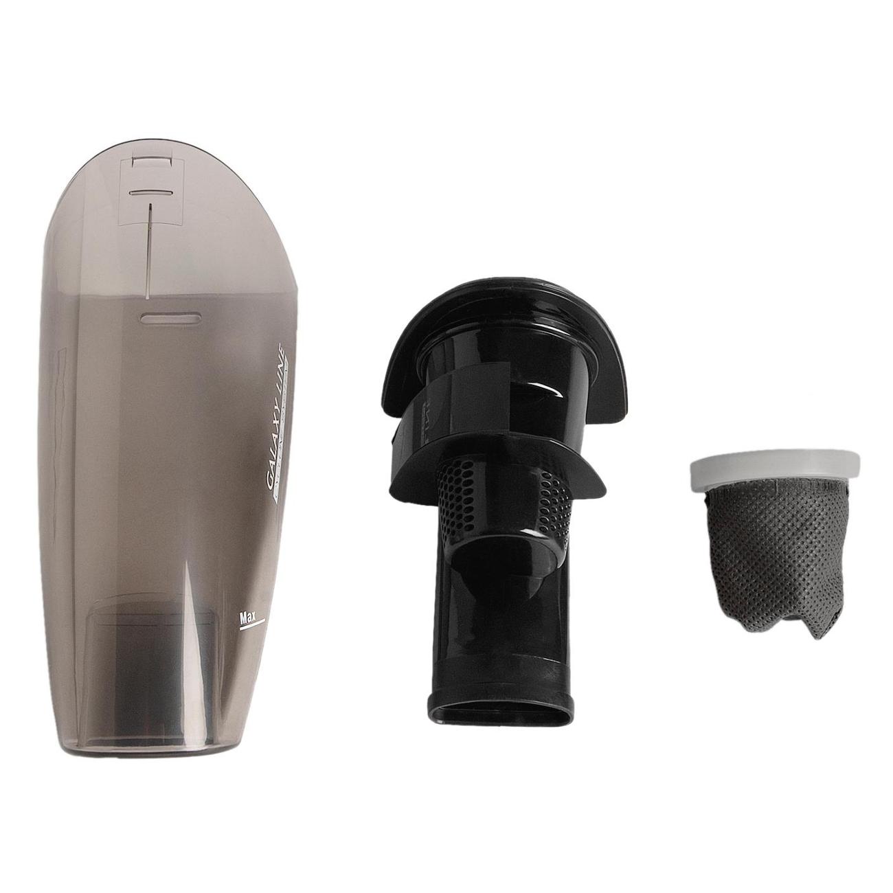Аккумуляторный пылесос Galaxy Line GL6220 предназначен для сухой уборки и сбора жидкости с поверхности. Устройство функционирует одном режиме мощности всасывания 9 Вт. Конструкция включает циклоническую систему сбора пыли, при помощи которой грязевые частицы сбиваются в плотный комок в резервуаре для пыли.