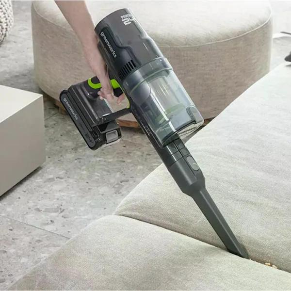 Пылесос Greenworks G24SVK4, зеленый — универсальный прибор, который может работать как вертикальный и как ручной. Мощность всасывания составляет 170 Вт. Питание обеспечивает аккумулятор (24 В), который предоставляет до 45 минут автономной работы. В торцевой части корпуса расположен дисплей, отображающий состояние батареи и время, оставшееся до отключения.
