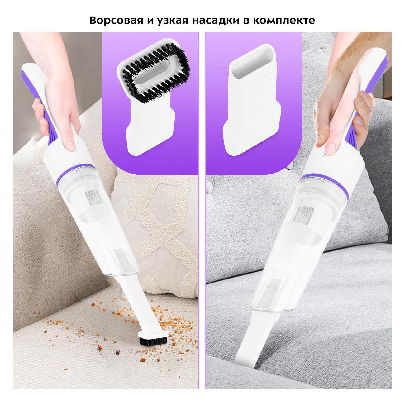 Пылесос оснащен несколькими насадками. Ворсовая идеально подходит для удаления мелкого мусора с ковровых и других поверхностей. Она обеспечивает улучшенную очистку и позволяет избежать появления царапин. С помощью узкой насадки можно обработать труднодоступные места, в частности, щели, углы и книжные полки. Пылесос оснащен системой фильтрации, которая не позволяет пыли попасть обратно в помещение. Фильтр, держатель для него и пылесборник можно снять, чтобы очистить под струей воды.