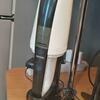 Кнопка включения-выключения удобно расположена на корпусе в месте захвата большим пальцем. Рядом расположен световой индикатор работы. Мощность пылесоса — 40 Вт, уровень шума составляет 70 дБ. Зарядка занимает 5-6 часов и обеспечивает до 18 минут автономности. Размеры устройства: 560х130х125 мм, вес — 0,77 кг.