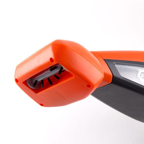 Прибор размером 16,8 х 15,85 х 41,2 см сделан из прочного пластика и устойчив к ударам и повреждениям. Он работает от прикуривателя и при перегреве автоматически выключается. Кнопки для управления расположены на ручке.