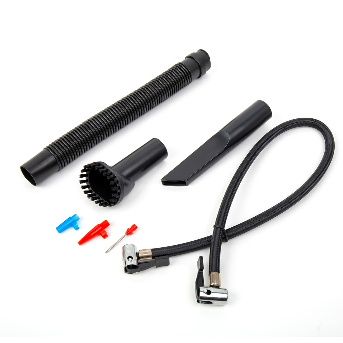 В сравнении со старыми автомобильными пылесосами, которые в своё время были у каждого и никто ими не пользовался - разница колоссальная. Убирает практически весь мусор, волосы, крошки. Есть удобные насадки шланг и узкая для труднодоступных мест. Также фонарик, что бы подсветить. Компрессор накачивает быстро и хорошо, манометр практически не врет.