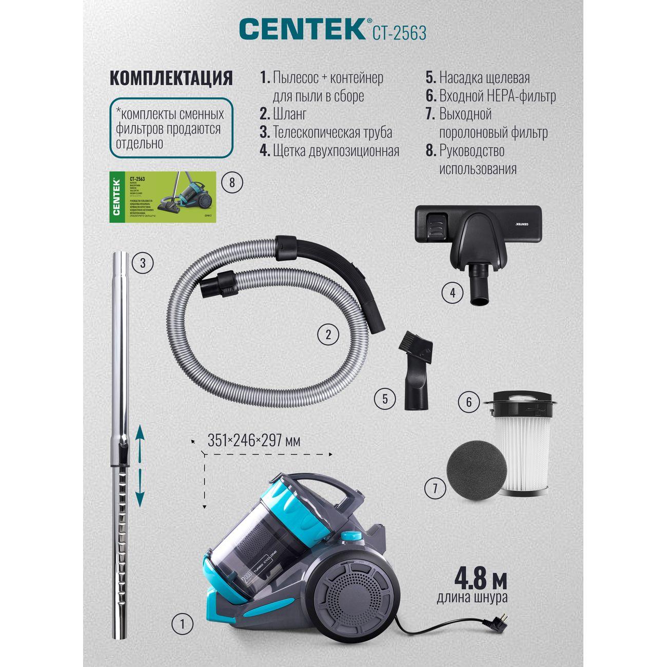 Вы можете купить Пылесос Centek CT-2563 в магазинах М.Видео по доступной цене. Пылесос Centek CT-2563: подробное описание, фото и отзывы реальных покупателей, характеристики, возможность скачать инструкции и подобрать аксессуары.