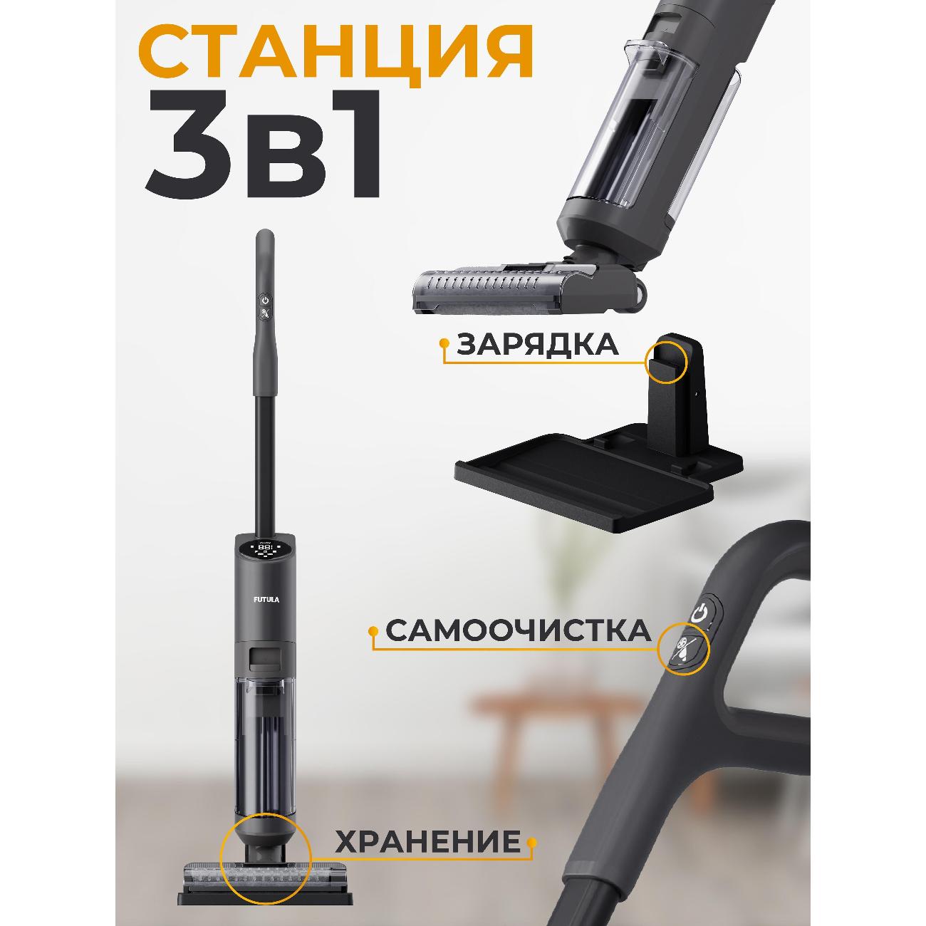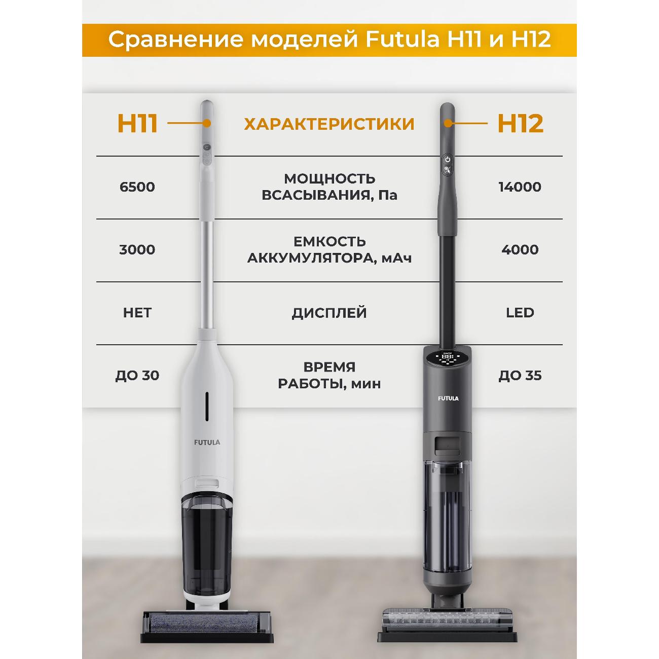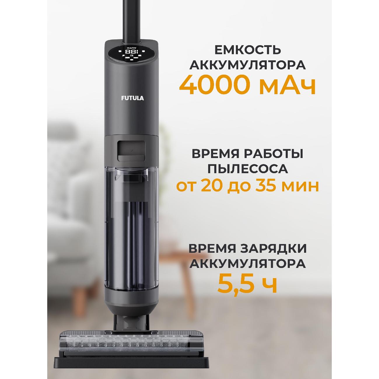 Моющий пылесос Futula H12 Black используется для проведения сухой и влажной уборки. Двигатель оснащен функцией быстрого запуска. Сила всасывания достигает 15000 Па. Потребляемая мощность прибора равна 22,2 Вт. Максимальный уровень шума — 74 дБ. Прибор оборудован двумя контейнерами. Съемный резервуар для воды объемом 0,8 л используется для чистой воды, которая подается на моющую насадку. Второй, объемом 0,6 л, используется как пылесборник контейнерного типа. Установлен фильтр класса HEPA. Для уборки предусмотрена одна насадка.