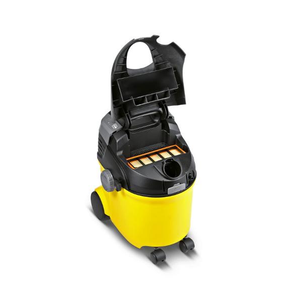 Прибор оснащен плоским складчатым фильтром Eco из влагостойкого полиэфирного волокнистого материала. Он задерживает до 99,9% мелких пылевых частиц и аллергенов, способствуя очищению воздуха в помещении. Влажная уборка проходит без фильтр-мешка, с возможностью добавления в воду моющего средства. Пылесос работает в режимах разбрызгивания и всасывания. Раствор проникает в структуру текстильных волокон, растворяет пятна жира и старые загрязнения. Его остатки впитываются насадкой, конструкция которой ускоряет высыхание поверхностей на 50%.