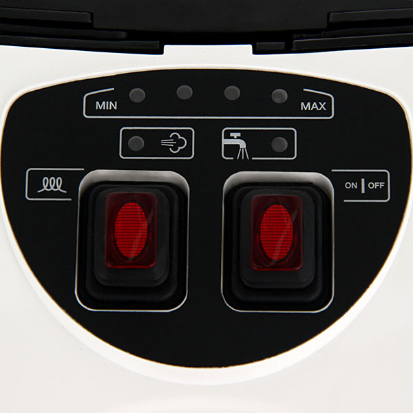 Благодаря широкому радиусу действия (7,5 м) и длинному сетевому шнуру вам не придётся часто перемещать прибор в процессе. Впрочем, эта модель очень мобильна за счёт прорезиненных колёс и послушно последует за вами в любом направлении. Скорость и выбранная программа регулируются на корпусе, а индикатор долива воды подскажет, когда жидкость закончится.
