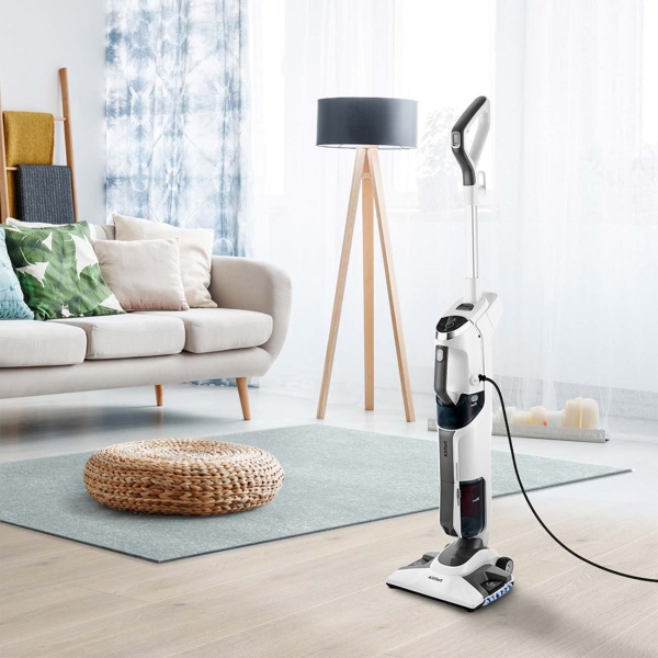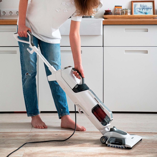 долго думала какой заказать. выбрала по мощности и цвету эту модель. да, тяжеловат, но колёсики хорошо ездят. за 30 мин убрала 58 квадратов. воды хватает на 18 квадратов, поэтому 3 раза набирала контейнер. воду заливаю очищенную. ожидала, что ребристый линолеум отмоет, но это отмывать надо мелкой насадкой, которая от первого применения 15 минут вся согнулась, таких в комплекте 2. но могу сказать всё равно стало гораздо чище. так обычной шваброй не отмыть. удобно, что в одном и пылесос и паровая швабра. иначе бы пришлось длма держать 2 прибора. к покупке рекомендую, но не ждите супер результата, это всё же не профессиональный прибор за 100тр. но эта модель достойна быть в каждом доме. тем более приемлемая цена.
