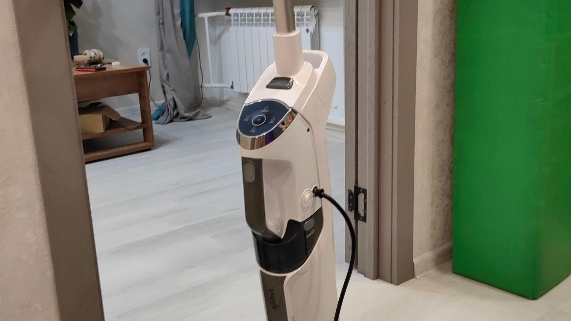 резервуар для воды маловат, на 1к кв при обработке всех полов паром приходиться следить и доливать. шнур вроде удобно, что длинный, можно от 1 розетки все обработать, но из-за этого действительно иногда мешается. тяжеловат для женских рук, но это опять не такая уж и проблема, тк все таки пылесос с кучей наворотов, а не швабра