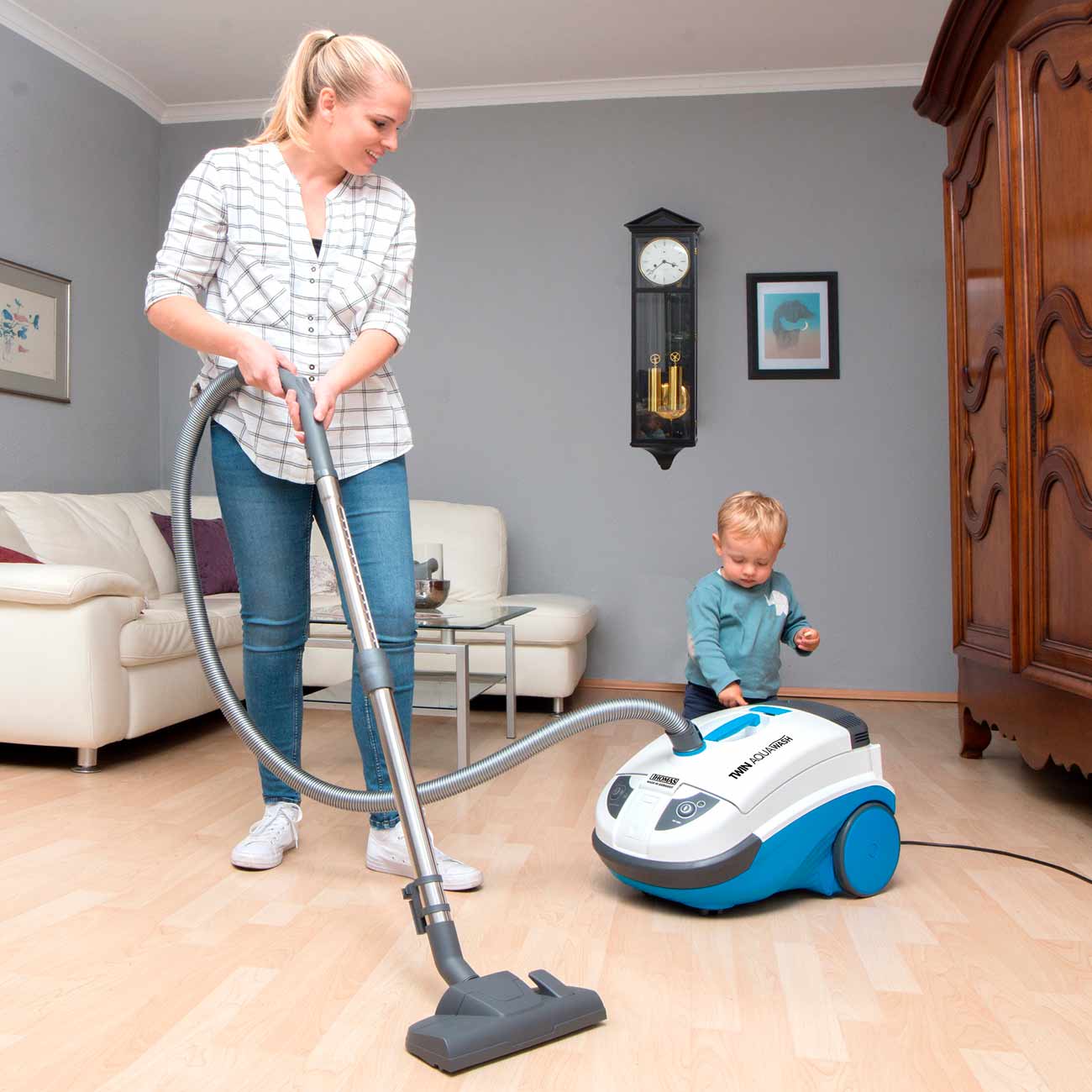 Начиталась хороших отзывов, которые видимо пишут консультанты, которые их продают или люди у которых не было хорошего мощного пылесоса. Итак пластик одноразовой посуды, который нажатием пальца можно прогнуть, бак для жидкости все время выпадает, крепление (для подачи воды) не держится, тяжёлый, за шланг не повозишь надо таскать руками, после влажной уборки нужно шваброй насухо вытирать полы, потому что мощность всасывания на нуле(1600), оставляет лужи на полу, щётки одеваются без крепления, соответственно снять очень проблематично. До этого был Самсунг для сухой уборки(2000) выдергивал линолеум из под плинтуса и стоил в 3 раза дешевле, проработал 9 лет, пылесосила каждый день. Шланг и крепления трубки со временем поизносились, решила купить новый пылесос и пожалела очень сильно. Покупала в частный дом для влажной и сухой уборки множественных покрытий (ковры, линолеум, ламинат, кавролиновые накладки на лестнице) и в итоге пользуюсь старым пылесосом, который с забитыми пылью фильтрами и дырявым шлангом сосёт в 1000 раз мощнее. Очень обидно.