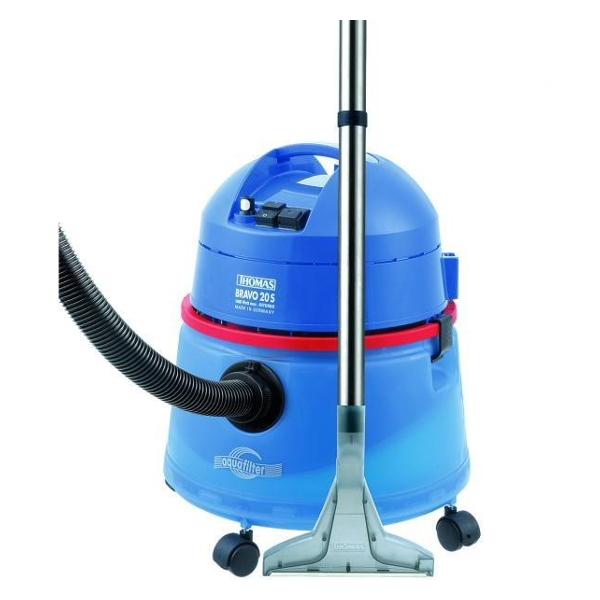 Моющий пылесос Thomas Bravo 20S Aquafilter номинальной мощностью всасывания до 330 аВт предназначен для сухой и влажной обработки напольных покрытий. Агрегат в корпусе с бочковой конструкцией оснащен электродвигателем, ручкой для переноски, всасывающим шлангом, составной трубой из металла, пылесборником, аквафильтром. Четыре колеса отвечают за маневренность корпуса.