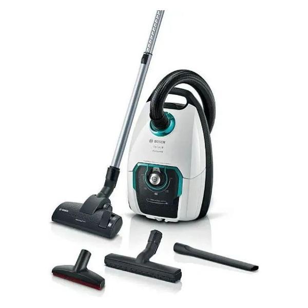 Пылесос бытовой Bosch BGL8HYG2 из серии Serie 8 оснащен насадкой 3 в 1, которая обеспечивает его максимальную универсальность и удобство использования. Это означает, можно выполнять несколько функций одновременно, что значительно упрощает процесс уборки. Электронная регулировка мощности с поворотным регулятором, расположенным на корпусе, позволяет настроить работу прибора под конкретные задачи и условия использования. Так, доступны три уровня производительности: для легкой, нормальной и тщательной уборки. Пылесос мешковый Bosch оснащен системой гигиенической фильтрации HEPA, которая обеспечивает высокую степень очистки воздуха от мельчайших частиц пыли и аллергенов. Объем пылесборника составляет 5 литров, что позволяет сократить количество смен мешка для пыли. Индикатор заполнения пылесборника своевременно сообщит о необходимости его замены. Система PowerProtect обеспечивает оптимальное использование мешка для пыли и поддерживает высокую уборочную мощность даже при его заполнении. Телескопическая трубка всасывания удобно регулируется в зависимости от роста пользователя и особенностей уборки. В комплекте идут различные насадки, включая насадку для пола и ковров, щелевую насадку и насадку для мягкой мебели. Также в комплекте предусмотрена моющая насадка для мебельной обивки. Устройство имеет четыре подвижных ролика для удобства перемещения по помещению. Функция автосматывания сетевого шнура и вертикальная парковка обеспечивают удобство хранения пылесоса. Радиус действия составляет 15 метров, что позволяет убирать большие помещения без необходимости переключения розеток. Мощный и надежный мотор обеспечивает высокую производительность и долговечность. Потребляемая мощность составляет 2200 Вт.Ключевые преимущества: