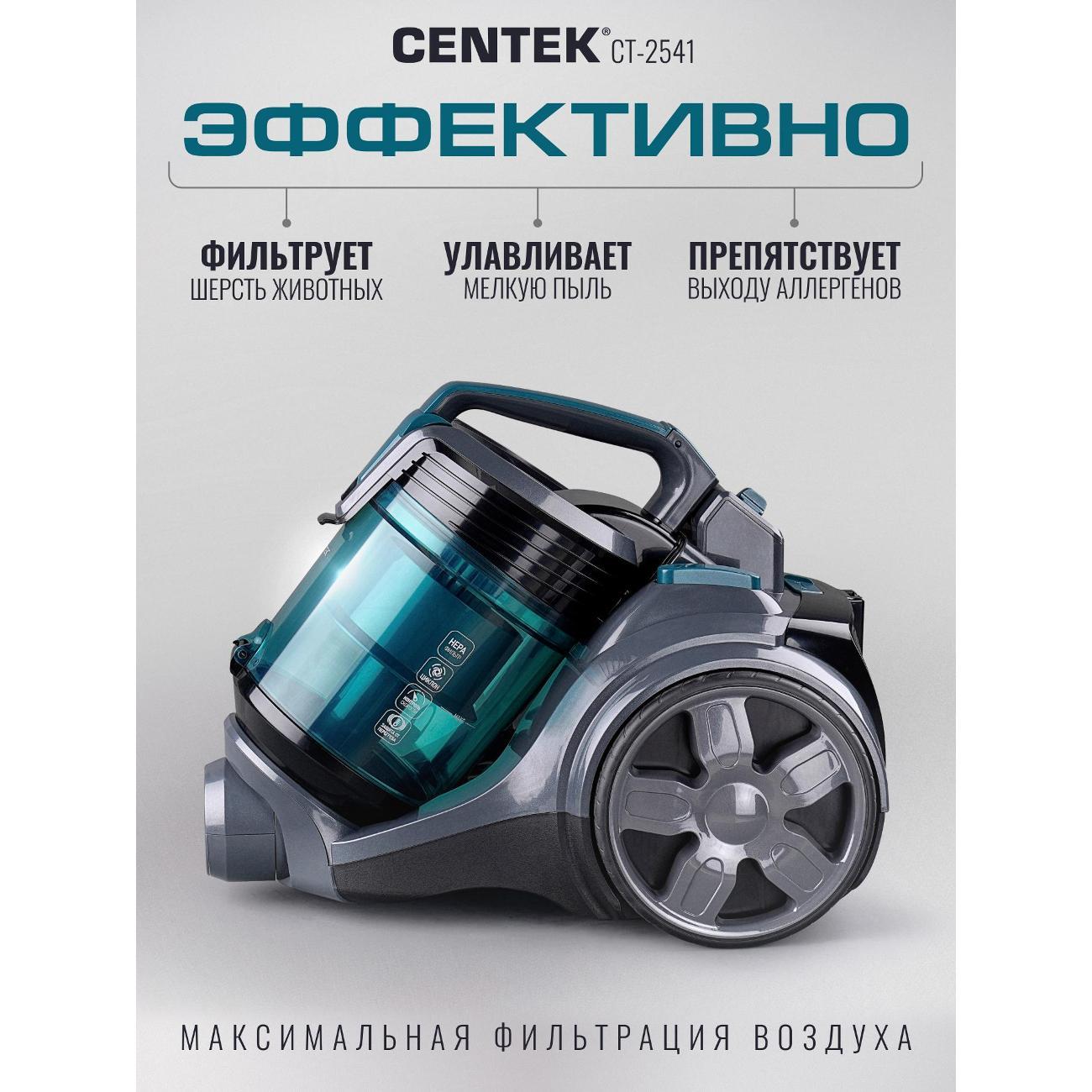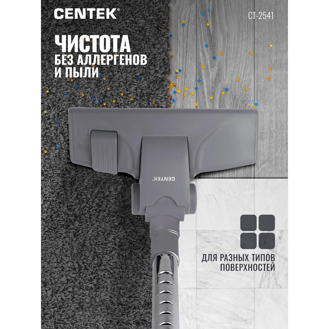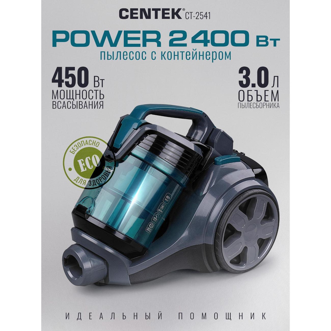 Centek CT 2541 — традиционный напольный пылесос для сухой уборки с циклонным пылесборником. Модель отличается высокой мощностью всасывания, вместительным контейнером и продуманной эргономикой. Подходит для регулярной уборки дома: эффективно очищает ковры, твёрдые полы, мебель и труднодоступные места. Мощность всасывания 450 Вт и потребляемая мощность 2400 Вт позволяют удалять пыль, крошки, песок и шерсть животных даже с ковров с высоким ворсом. Вместительный пылесборник контейнер объёмом 3 л даёт возможность убирать большие площади без частых остановок для очистки. Трёхступенчатая система фильтрации с HEPA фильтром задерживает до 99,9 % мельчайших частиц, включая аллергены и пыльцу. Противоскользящая ручка удобно лежит в руке, снижая усталость при длительной уборке. Металлическая хромированная труба регулируется по длине под рост пользователя и устойчива к износу. Плавный регулятор мощности на корпусе позволяет настраивать интенсивность всасывания в зависимости от типа поверхности. Сетевой кабель легко убирается одним нажатием кнопки, что упрощает хранение пылесоса. Компактные габариты и продуманная конструкция облегчают перемещение пылесоса по дому и уборку в труднодоступных местах. Centek CT 2541 — надёжный выбор для тех, кто ищет мощный и удобный пылесос для дома. Модель оптимальна для: квартир с разными типами покрытий: ковры, ламинат, плитка, семей с детьми и домашними животными эффективно собирает шерсть и аллергены, тех, кому важна тихая работа устройства и минимум хлопот с обслуживанием без мешков. Пылесос сочетает производительность, комфорт и долговечность, обеспечивая качественную уборку без лишних затрат времени и усилий.
