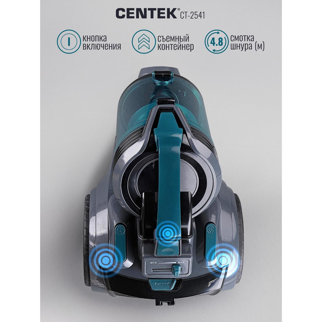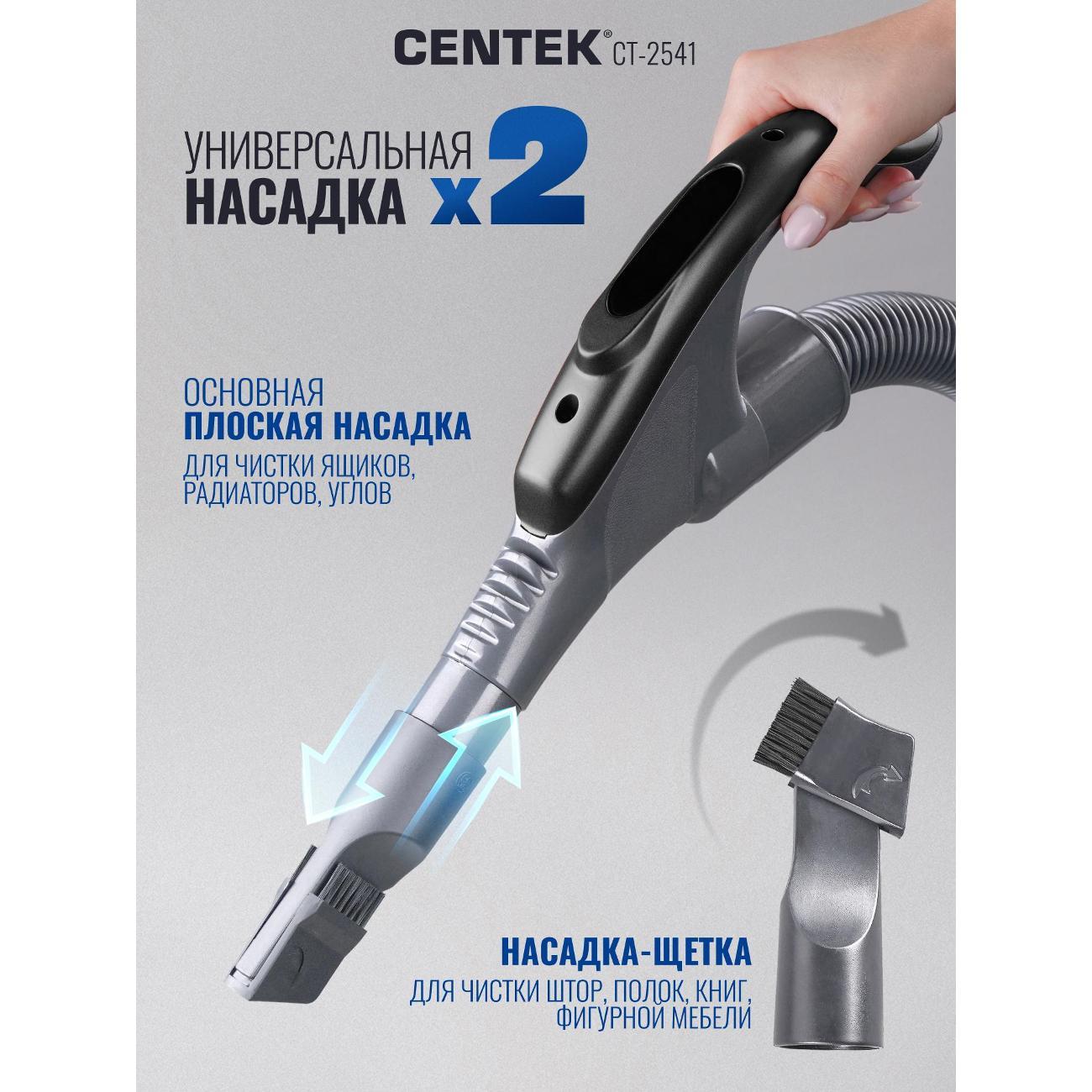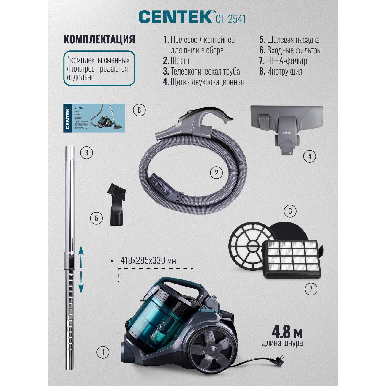 Centek CT 2541 — традиционный напольный пылесос для сухой уборки с циклонным пылесборником. Модель отличается высокой мощностью всасывания, вместительным контейнером и продуманной эргономикой. Подходит для регулярной уборки дома: эффективно очищает ковры, твёрдые полы, мебель и труднодоступные места. Мощность всасывания 450 Вт и потребляемая мощность 2400 Вт позволяют удалять пыль, крошки, песок и шерсть животных даже с ковров с высоким ворсом. Вместительный пылесборник контейнер объёмом 3 л даёт возможность убирать большие площади без частых остановок для очистки. Трёхступенчатая система фильтрации с HEPA фильтром задерживает до 99,9 % мельчайших частиц, включая аллергены и пыльцу. Противоскользящая ручка удобно лежит в руке, снижая усталость при длительной уборке. Металлическая хромированная труба регулируется по длине под рост пользователя и устойчива к износу. Плавный регулятор мощности на корпусе позволяет настраивать интенсивность всасывания в зависимости от типа поверхности. Сетевой кабель легко убирается одним нажатием кнопки, что упрощает хранение пылесоса. Компактные габариты и продуманная конструкция облегчают перемещение пылесоса по дому и уборку в труднодоступных местах. Centek CT 2541 — надёжный выбор для тех, кто ищет мощный и удобный пылесос для дома. Модель оптимальна для: квартир с разными типами покрытий: ковры, ламинат, плитка, семей с детьми и домашними животными эффективно собирает шерсть и аллергены, тех, кому важна тихая работа устройства и минимум хлопот с обслуживанием без мешков. Пылесос сочетает производительность, комфорт и долговечность, обеспечивая качественную уборку без лишних затрат времени и усилий.