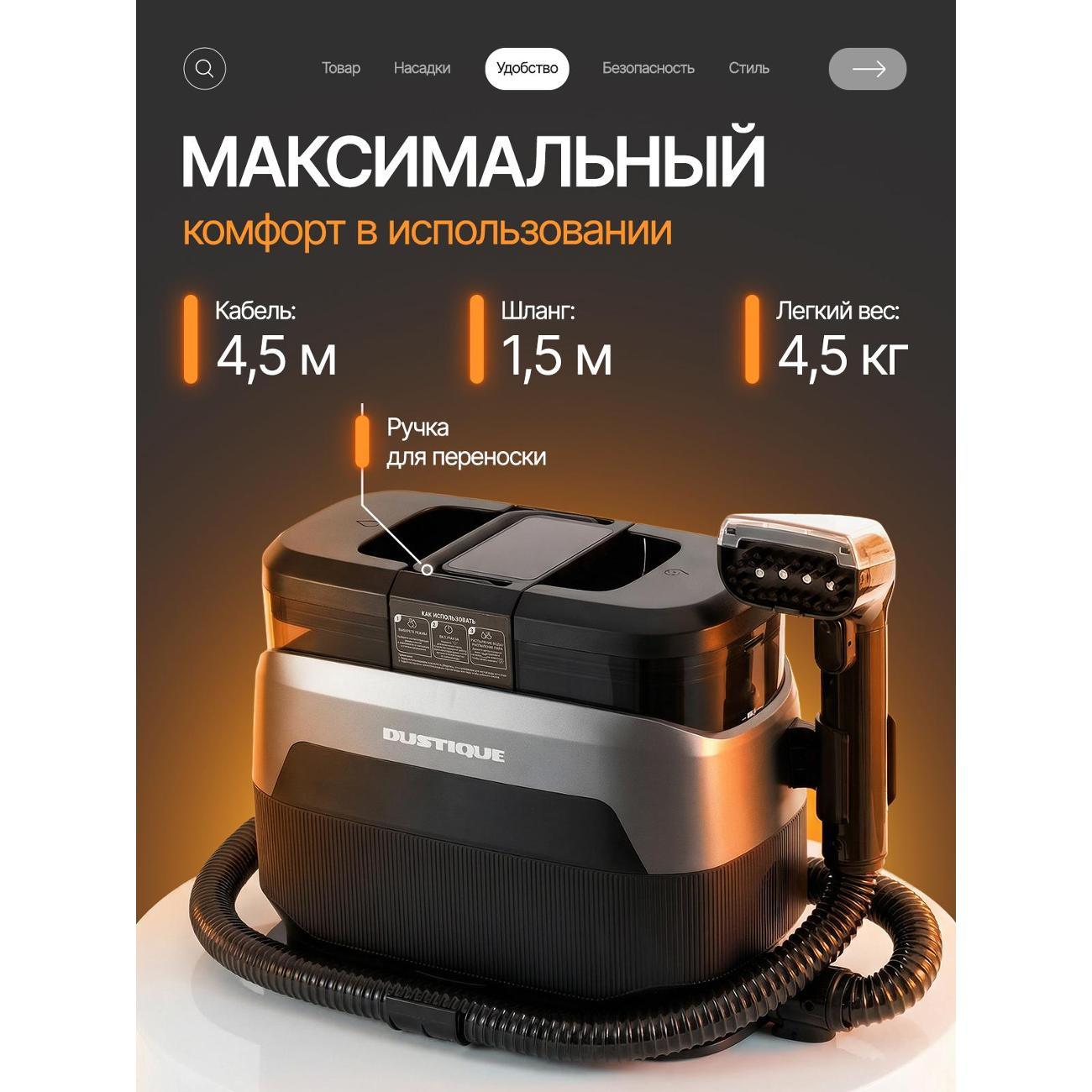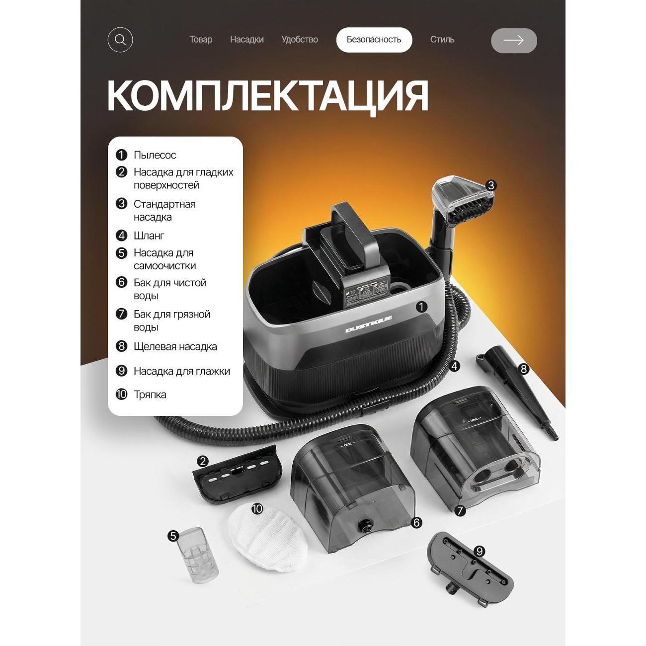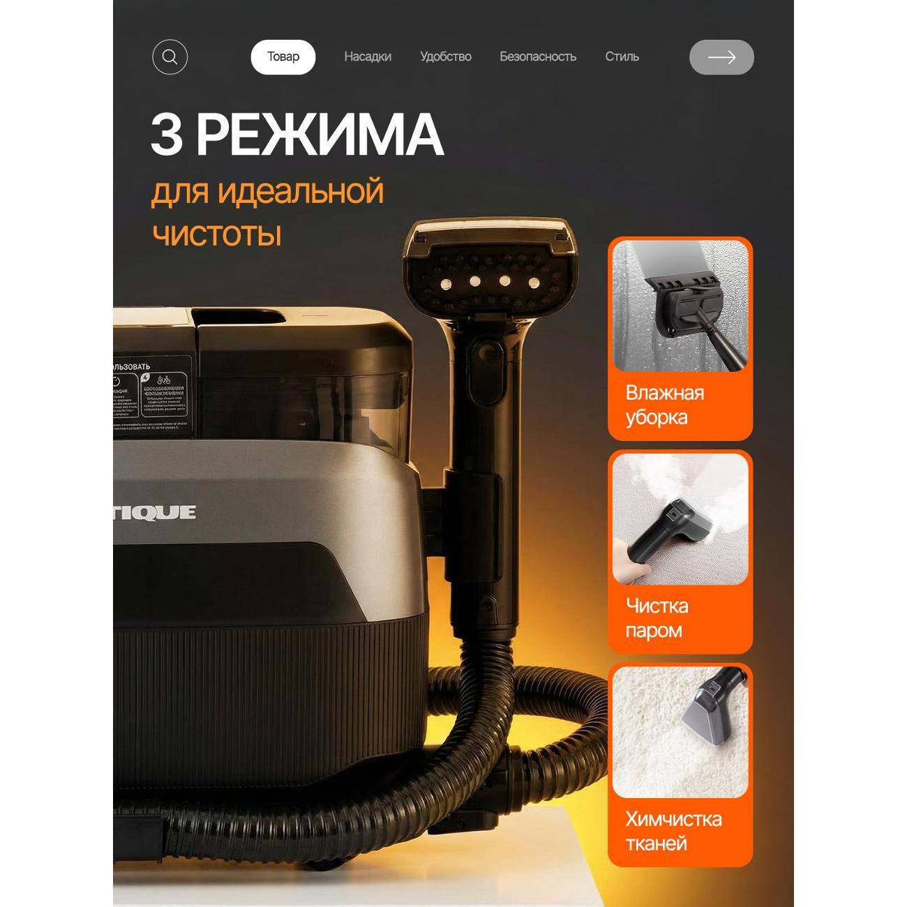 Моющий пылесос с функцией подачи пара предназначен для глубокой очистки ковров, мягкой мебели и твёрдых поверхностей. Устройство сочетает влажную уборку, вакуумный сбор загрязнений и обработку горячим паром, что позволяет использовать одну систему для бытовых и клининговых задач.