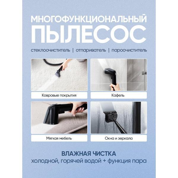 Моющий пылесос с функцией подачи пара предназначен для глубокой очистки ковров, мягкой мебели и твёрдых поверхностей. Устройство сочетает влажную уборку, вакуумный сбор загрязнений и обработку горячим паром, что позволяет использовать одну систему для бытовых и клининговых задач.