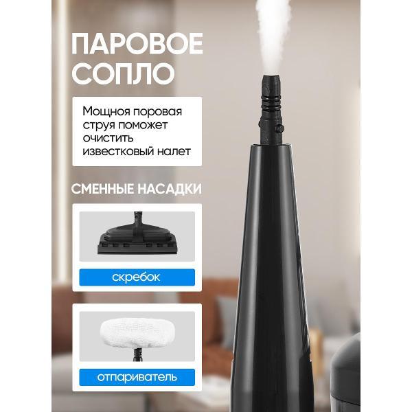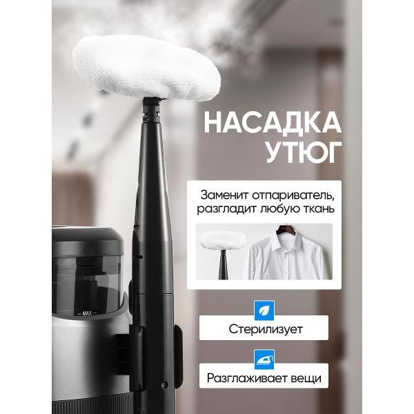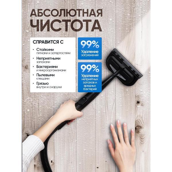 Резервуар для чистой воды объёмом 1250 мл и ёмкость для сбора грязной воды на 1150 мл обеспечивают продолжительную уборку без частых перерывов. Поддерживаются режимы работы с холодной и горячей водой, пар с одновременным всасыванием, а также подача пара без вакуума. Такой набор режимов подходит для обработки напольных покрытий, ковров, мебели, стекла, плитки и кафеля.