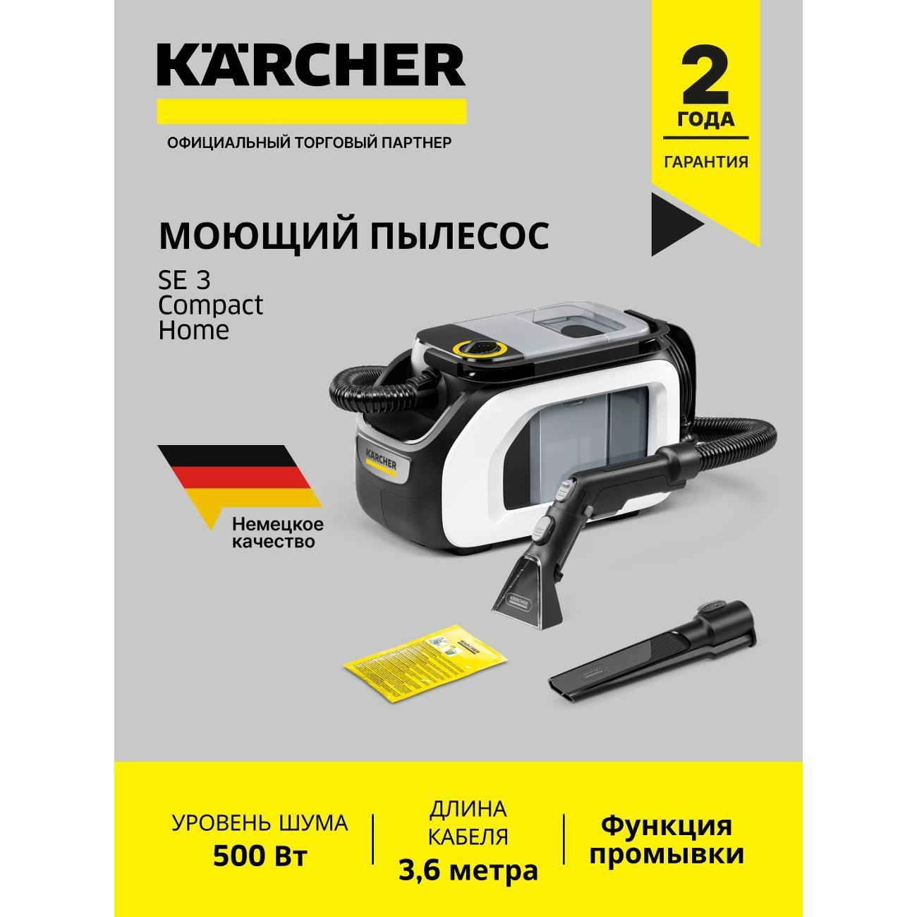 Вы можете купить Пылесос напольный Karcher SE 3 Compact Home 1.081-530.0 в магазинах М.Видео по доступной цене. Пылесос напольный Karcher SE 3 Compact Home 1.081-530.0: подробное описание, фото и отзывы реальных покупателей, характеристики, возможность скачать инструкции и подобрать аксессуары.