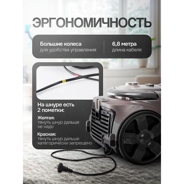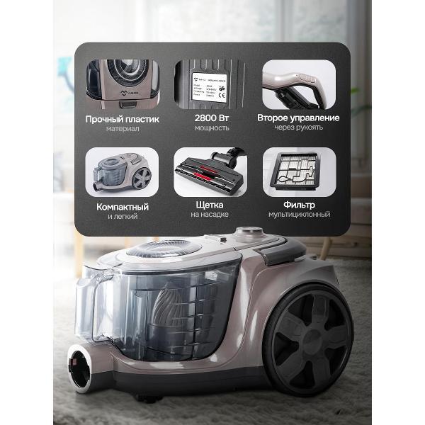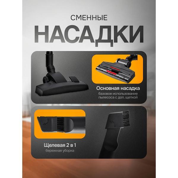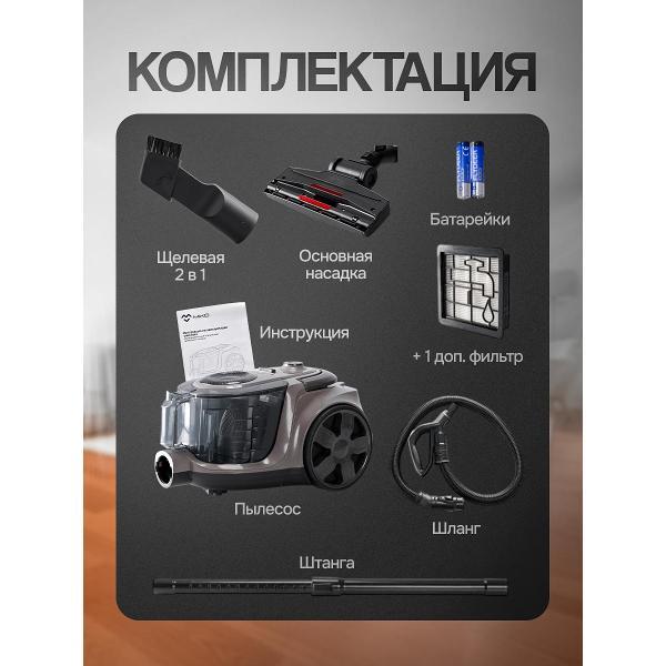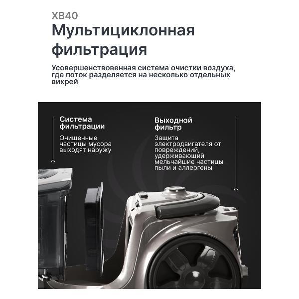 MIKO XB40 - мощный пылесос с расширенным функционалом. Двигатель на 2800 Вт и силой всасывания до 350 Вт сохраняет производительность даже при заполненном контейнере. Объём пылесборника – 3,5 литра, хватает на 3-4 цикла без разгрузки. Кабель длиной 6,8 метра обеспечивает большую свободу при уборке. Дублированная система управления: кнопками на корпусе и на эргономичной рукоятке. Ручка работает от батареек ААА (идут в комплекте). 5 уровней мощности, оснащён 2 рабочими насадками: стандартная для пола, щелевая с выдвигающейся щеткой. Время автономной работы - от сети. Подходит для убоки всех видов напольных покрытий, а так же для ковров с высоким ворсом. Система фильтрации - мультициклонный фильтр (фильтр грубой очистки, фильтр HEPA). Вес 5.15 кг. Комплектация: пылесос, шланг (1,5 м), основная насадка, щелевая насадка, + 1 доп фильтр (HEPA 13), батарейки для ручки, инструкция на русском языке. Возможно приобрести все комплектующие отдельно.