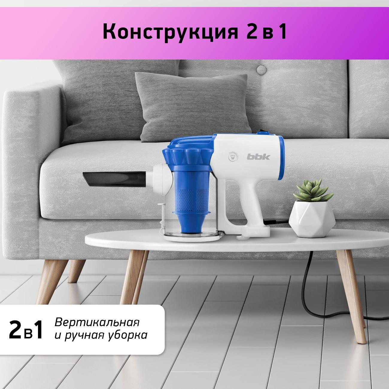 Ручной пылесос BBK BV2512 Blue — вертикальный, с уровнем шума 79 дБ. Радиус действия модели — 4,5 м. Устройство оснащено отсоединяемым портативным пылесосом. Управление механическое и расположено на корпусе.