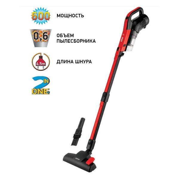 Номинальная мощность ручного пылесоса равна 600 Вт. Управление механическое, интуитивно понятное и простое. Корпус и трубка выполнены из пластика. Высокая мобильность и возможность работы в труднодоступных местах обеспечивается литий-ионным аккумулятором (Li-Ion) емкостью 2000 мА*ч. Время работы при полной батареи — до 50 минут. Зарядка осуществляется от стандартной сети — для подключения к ней предусмотрен 4,5-метровый кабель. Чтобы полностью зарядить аккумулятор, необходимо до 2,5 часа. Комплектация состоит из четырех насадок: турбощетки, щетки, щелевой, насадки для пола и ковров. Размеры модели — 126,9х31,3х27 см, вес — 2,2 кг.