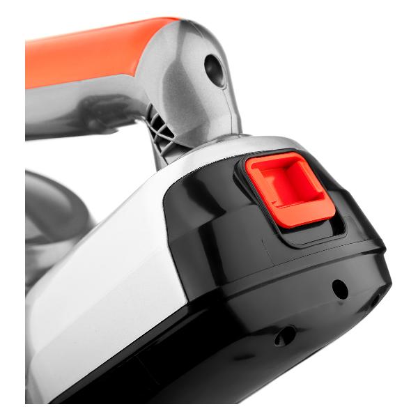 Ручной пылесос Brayer BR4267 в оранжево-сером корпусе оснащен портативным отсоединяемым пылесосом для уборки труднодоступных мест и салонов автомобилей. Управление моделью механическое, панель располагается на ручке. Там же находится регулятор мощности.