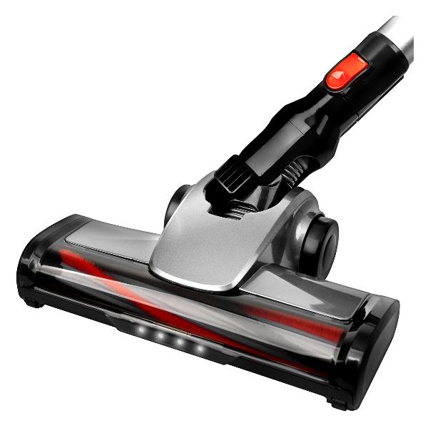 На корпусе пылесоса располагается световая индикация заряда батареи. Тип электропитания — аккумулятор емкостью 2200 мА*ч с напряжением 22,2 В. Время работы пылесоса составляет 45 минут, время зарядки — приблизительно 4,5 часа. Прибор устанавливается на зарядку вручную.