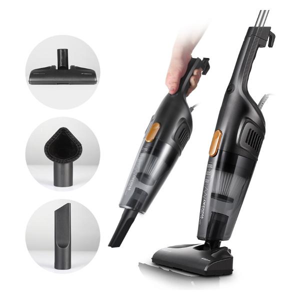 Номинальная мощность модели составляет 600 Вт. Устройство оснащено сетевым шнуром длиной 5 м. За счет вертикального типа пылесос не занимает много места при хранении. Модель поставляется с подставкой для установки. За безопасность отвечает функция отключения при перегреве.