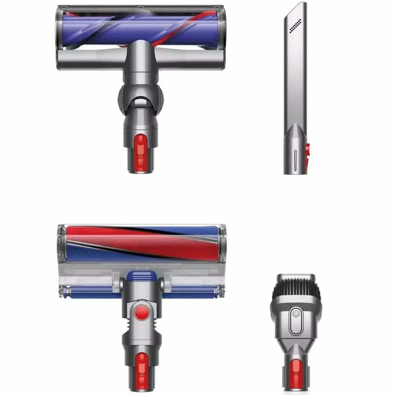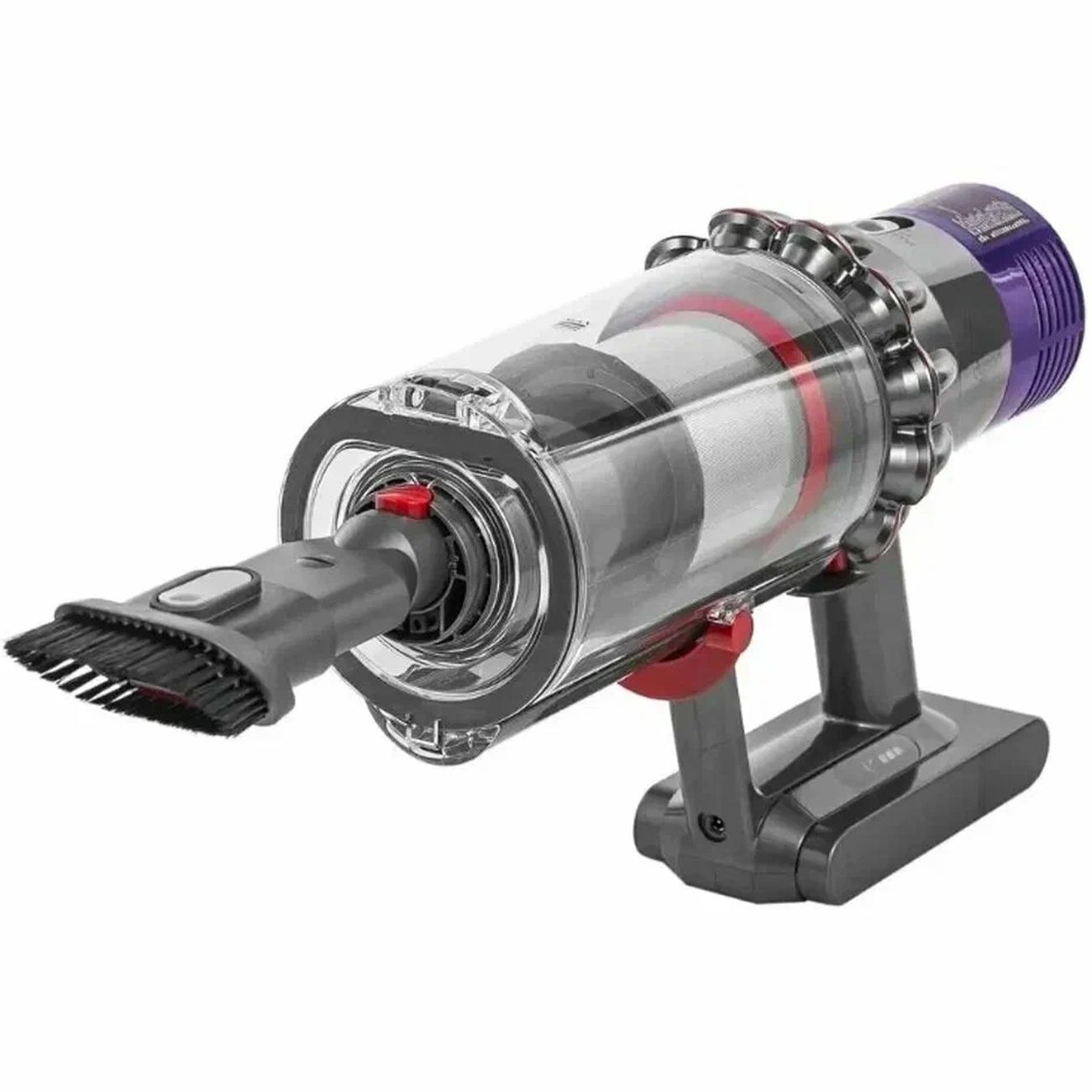 Пылесос ручной Dyson Сyclone V10 Total Clean мощностью всасывания до 150 аВт спроектирован для сухой уборки. Корпус прибора весом 2, 68 кг оснащен удобной для захвата рукояткой, двигателем Digital Motor V10 с цифровым управлением и верхним контейнером-пылесборником емкостью 0,76 л. На корпусе расположены клавиша включения и переключатель выбора мощности для управления настройками. Портативная модель трансформируется в трость путем присоединения цельной удлинительной трубы, которая помогает достигать труднодоступных мест.