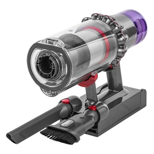 Ручной пылесос Dyson V11 Total CLean Extra весом 3,09 кг изготовлен из пластика золотистого цвета. Модель беспроводная, оснащена двумя аккумуляторами емкостью по 2500 мА*ч. Аккумулятор заряжается в течение 4,5 часа и предоставляет до 1 часа работы. При подключении двух аккумуляторов одновременно время работы увеличивается до 2 часов. Мощность мотора составляет 610 Вт, максимальная мощность всасывания — 220 Вт.