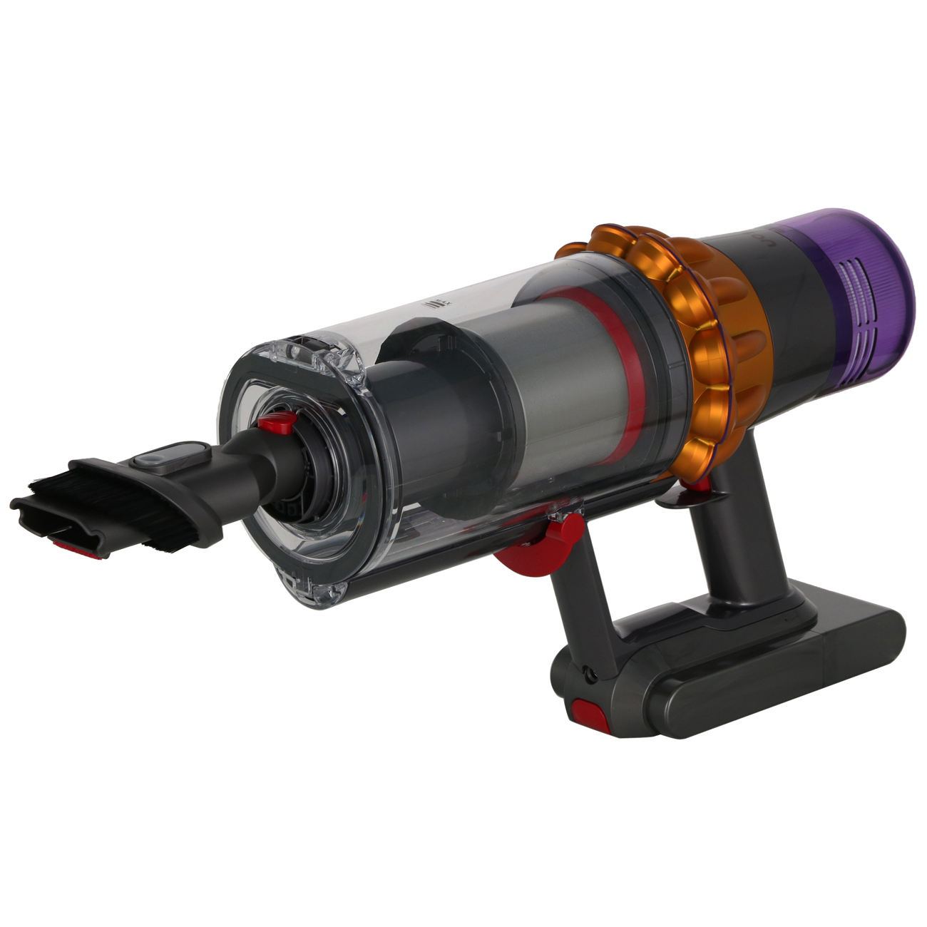 Пылесос Dyson V15s Detect Submarine предназначен для комбинированной уборки: он собирает мусор и моет пол. Двигатель совершает вращение со скоростью до 125000 об/мин, что гарантирует интенсивное всасывание.