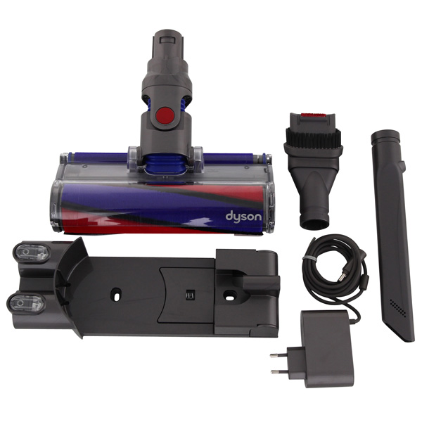Ручной пылесос Dyson V6 Animal Pro + предназначен для сухой уборки, максимальная мощность всасывания — до 100 Вт. Уровень шума не превышает 86 дБ. В комплекте есть три насадки, в том числе для мягкой мебели и мини-электрощетка.