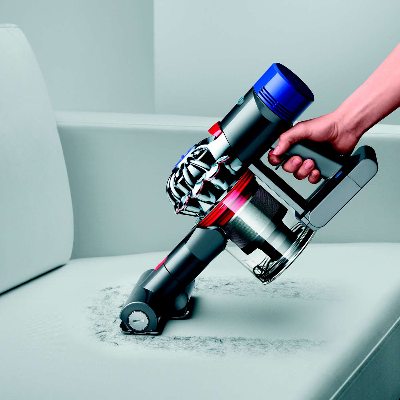 Ручной пылесос Dyson V7 Animal Extra разработан специально для владельцев домашних животных. Он укомплектован двумя турбощётками разной ширины, способными быстро собирать длинную шерсть с пола, ковров и мягкой мебели. К нему также прилагаются насадки для очистки твёрдых покрытий и уборки в труднодоступных местах.