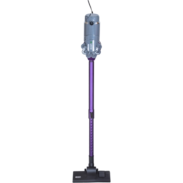 Пылесос Econ ECO-1252VC в корпусе серого и фиолетового цветов оснащен пылесборником объемом 2,5 л, размещенным сверху. Устройство получает питание от электросети, подключается с помощью кабеля длиной 5 м. Потребляемая мощность — 600 Вт.