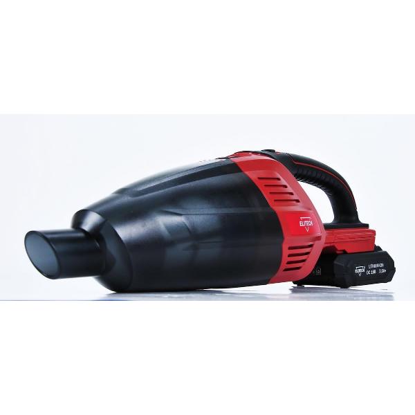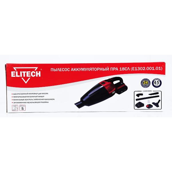 Ручной пылесос Elitech ПРА 18СЛ Red осуществляет сухую уборку помещения при мощности 34 Вт. Аккумулятор типа Li-Ion емкостью 2 мА*ч заряжается от сети 220 В за 45 мин. Работа от аккумулятора возможна в течение 20 мин, при этом уровень шума достигает 76 дБ. Рабочее напряжение составляет 18 В.
