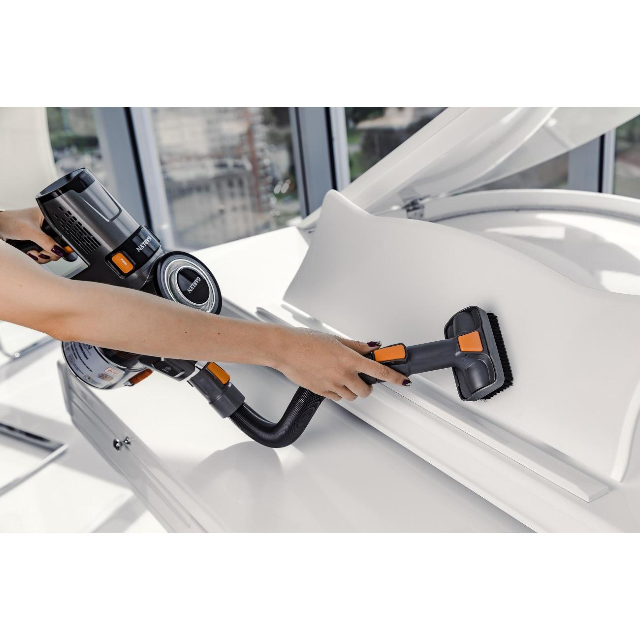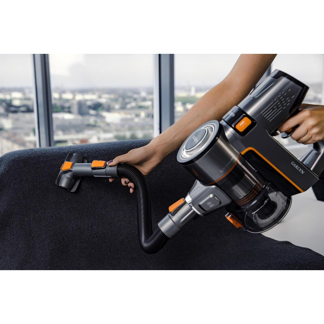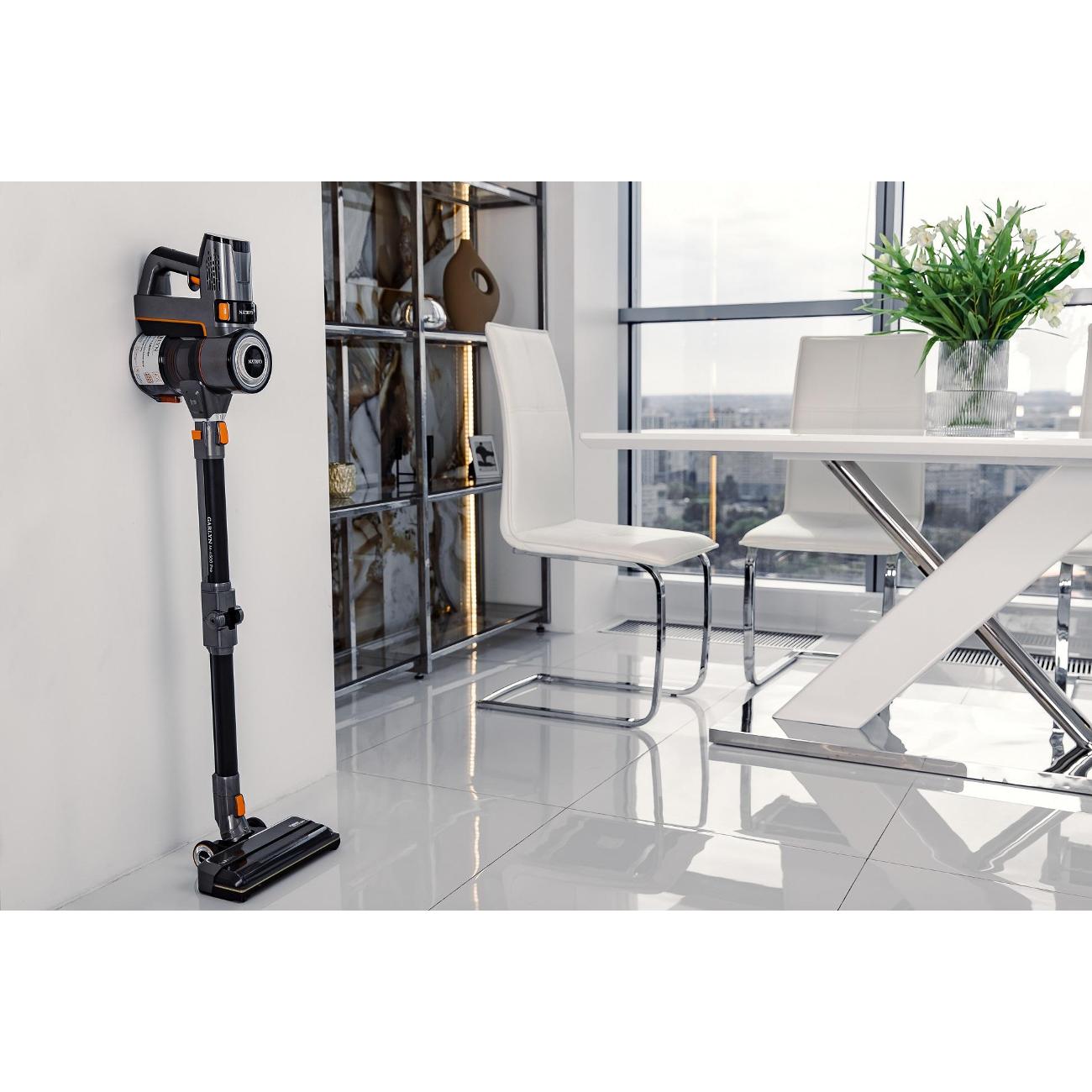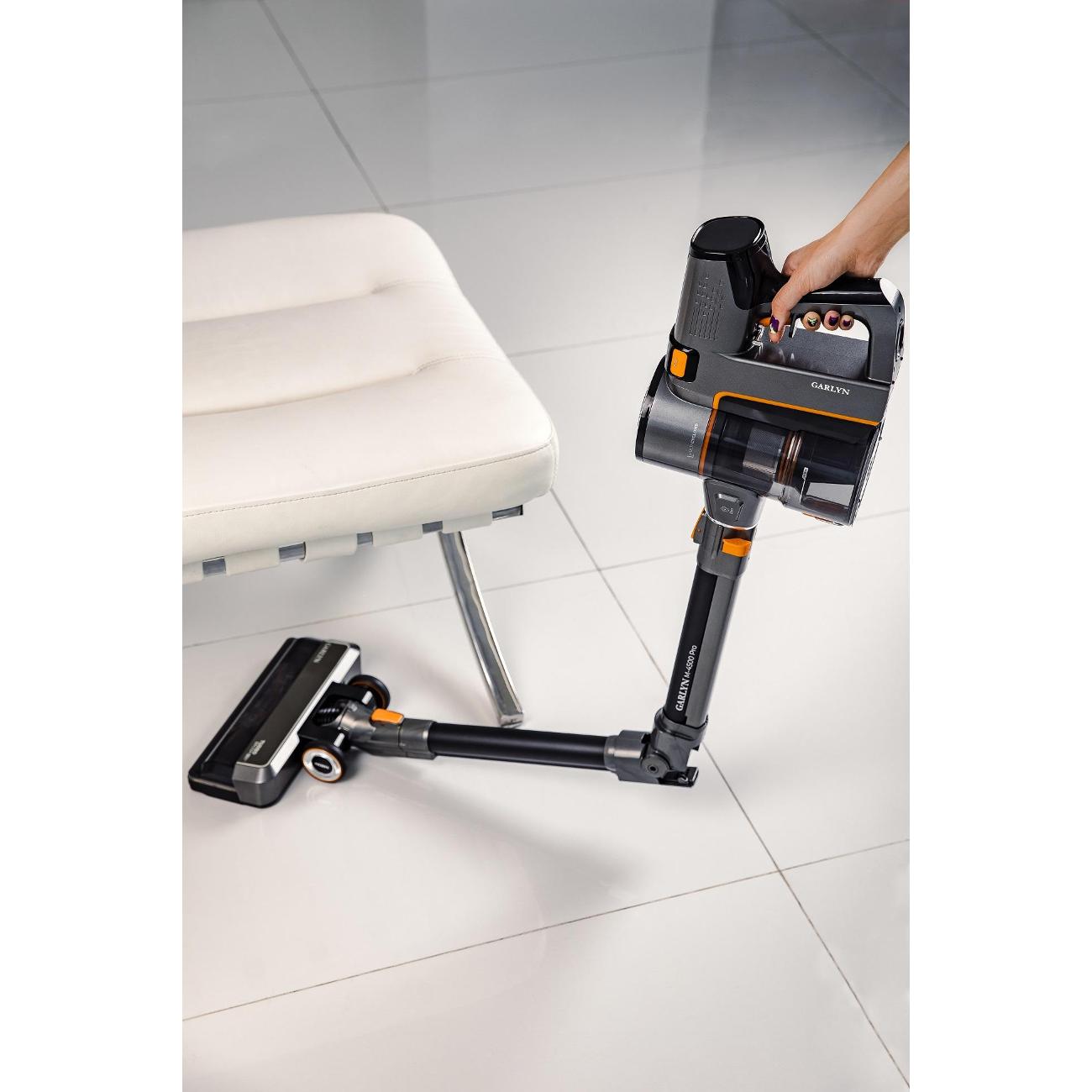 Аккумулятор разряжается с неимоверной скоростью, даже работая на минимальном режиме и в режиме авто. А уж если включить максимум, разрядится мгновенно- несколько минут! На одном заряде пропылесосить не удается ( три комнаты, прихожая. В трех комнатах ковры с коротким ворсом). Для основательной уборки вообще не годится- мощность всасывания хилая. Ну, во всяком случае, для уборки шерсти на коврах бесполезен. Т.е. люди, имеющие животных- это не наш вариант! Шерсть убирает плохо, где-то одну треть. После него в качестве эксперимента прошлась обычным пылесосом- собрала пыли и шерсти в 2 раза больше. Кстати, и мусор с пола тоже вяленько собирает, не с первого раза. Да, комплектация хорошая, богатая, но... все эти насадки просто не получается использовать- реально не хватает времени заряда аккумулятора- успеть бы кое-как просто полы пропылесосить! Или разбивать уборку по частям: пропылесосил кое-как пол( в два захода), в третий- можно и девайсы в виде щелевых щеток и гибкой насадки использовать. И еще очень большой минус- отсутствие вертикальной парковки, или крепления пылесоса к стене- тот еще треш- куда приткнуть падающий под тяжестью мотора пылесос!! Да, еще, когда приобретала пылесос, консультанты в М-видео клятвенно уверяли, что прикупить сменный аккумулятор к пылесосу- раз плюнуть: без проблем. Повелась, а зря!!! Здесь налицо некомпетентность консультантов или просто большое желание развести на покупку.... Прошерстила весь инет...Нигде сменного аккумулятора нет!!! Нигде!! Позвонила в службу Гарлин...Там его тоже нет. Сказали, что даже в планах поставки его нет. Может, месяца через два привезут!! А с одним аккумулятором уборка вместо быстрой превращается в многоэтапную, на весь день. Короче, бесполезная красивая игрушка. Отмотать бы время назад- не купила бы.