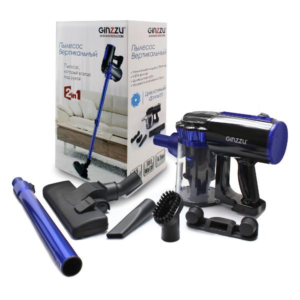 Пылесос Ginzzu VS117 синего цвета весит 2,174 кг. Устройство с сетевым шнуром длиной 4,5 м предназначено для сухой уборки. Максимальный уровень шума — 79 дБ. Номинальная мощность — 700 Вт, мощность всасывания — 215 Вт. Габариты — 109х24х16 см.