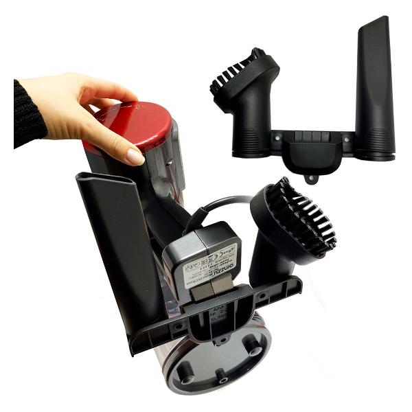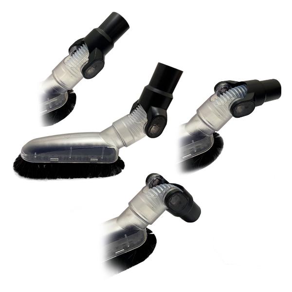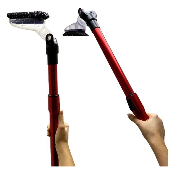 Используется циклонный микрофильтр. Объем пылесборника составляет 0,9 л. Управление механическое. Корпус изготовлен из пластика, а телескопическая трубка из металла. В комплект входит четыре насадки — для пола и ковров, щелевая, щетка и гибкая для труднодоступных мест.