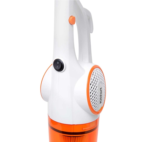 Ручной пылесос Kitfort КТ-523-1 весом 1,7 кг изготовлен из пластика оранжевого цвета. Трубка выполнена из металла. Модель проводная, работает от сети 220 В. Мощность мотора составляет 600 Вт. Прибор предназначен для сухой уборки с возможность всасывания жидкостей. Объем контейнера составляет 0,5 л. Управление механическое, с одним режимом работы. Система фильтрации — НЕРА.
