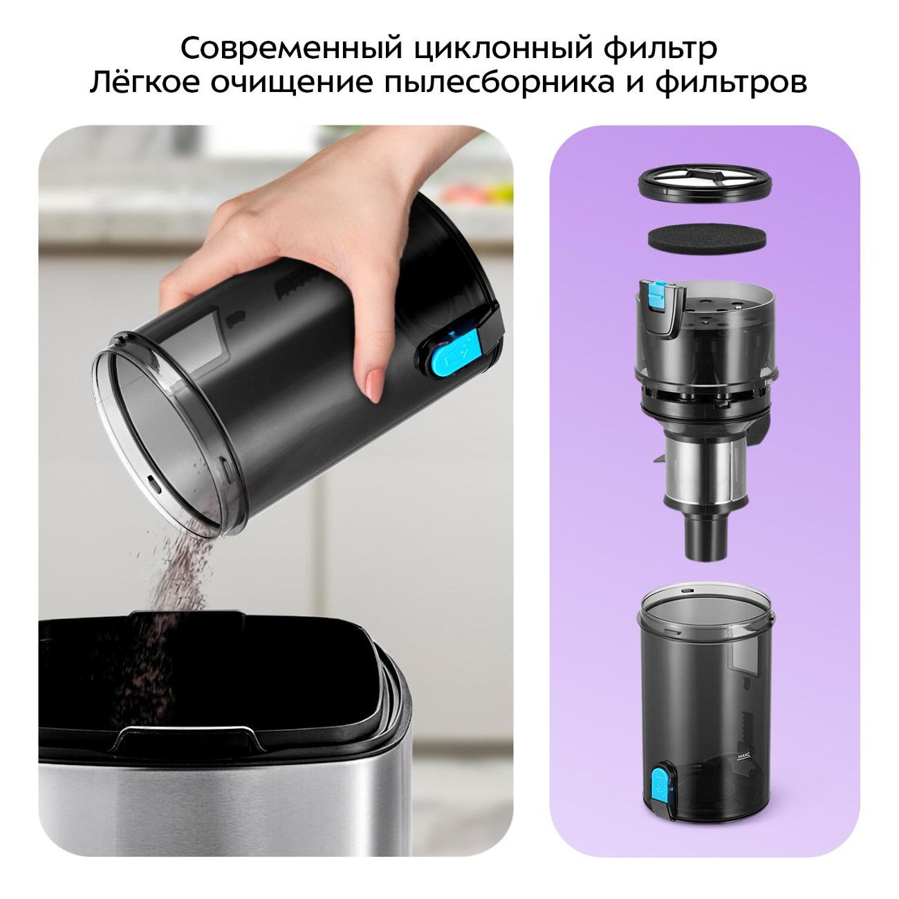На фото нигде нет как выглядит валик турбощетки. Когда забирал, поспешил не проверил. Дома оказалось что он резиновый, может и силикон, но какой-то дубовый. Подумал, что это что-то новое и модное. Зарядили, пропылесосили основную часть (заряда кстати в нум будь здоров, хватит на подъезд), а когда дошли до ковра, то ковер он не осилил. Щетка цепляется за ковер очень жестко, пыдесос пытается уехать из рук и выдает Е3. Проверил руками, мотор турбощетки крутит будь здоров, значит не брак, просто конструкция такая. Открываю инструкцию, думал я ошибся - но нет, там черным по белому, что ковры должен пылесосить.