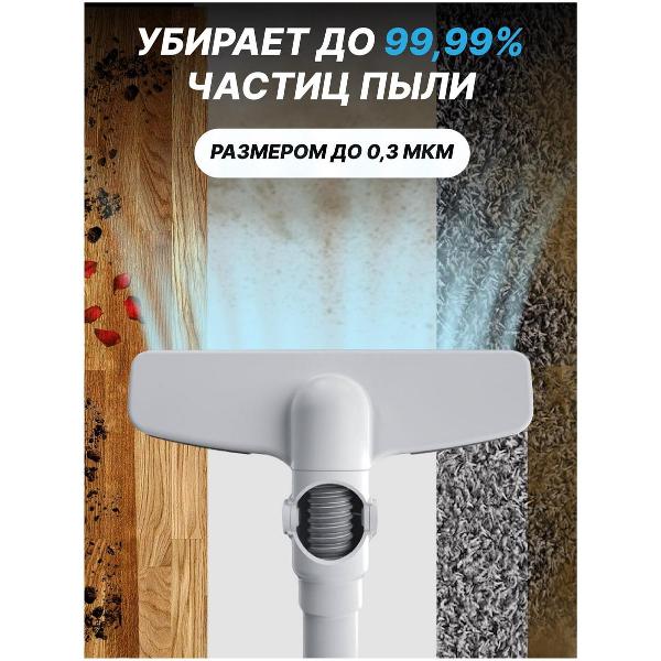 Пылесос предназначен для сухой уборки внутри помещений. Объем контейнера для сбора пыли — 350 мл. Пылесос установлен фильтр тонкой очистки HEPA. Модель беспроводная, функционирует от аккумулятора. Батарея литий-ионная, емкостью 2000 мА*ч. Максимальная потребляемая мощность и мощность всасывания пылесоса — 120 Вт.