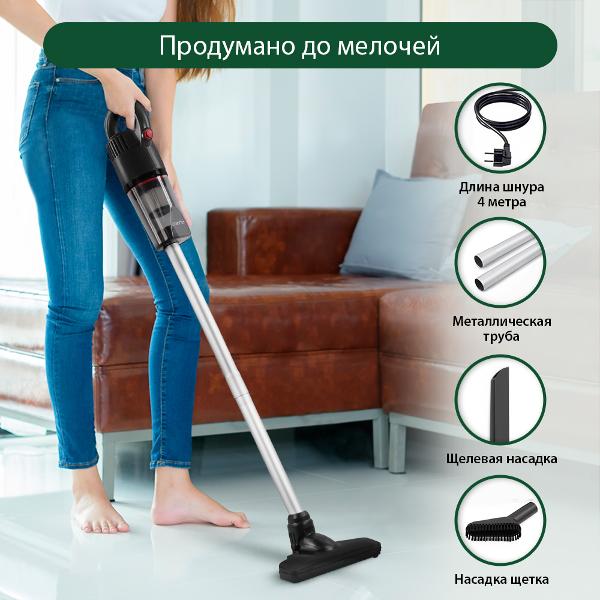 Пылесос с контейнером для пыли Marta MT-1379 цвета «черный жемчуг» оснащен электрокабелем длиной 4 м. При работе устройство потребляет мощность 600 Вт. Модель оборудована контейнером для сбора пыли объемом 1 л, а также длинной щелевой насадкой, насадкой для пола и ковров и насадкой-щеткой. Устройство работает в двух режимах и производит шум 65 дБ. На корпусе модели расположены ручки для вертикального и горизонтального перемещения.